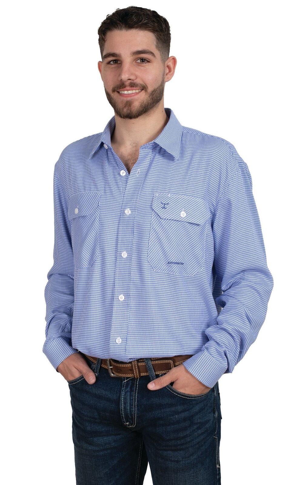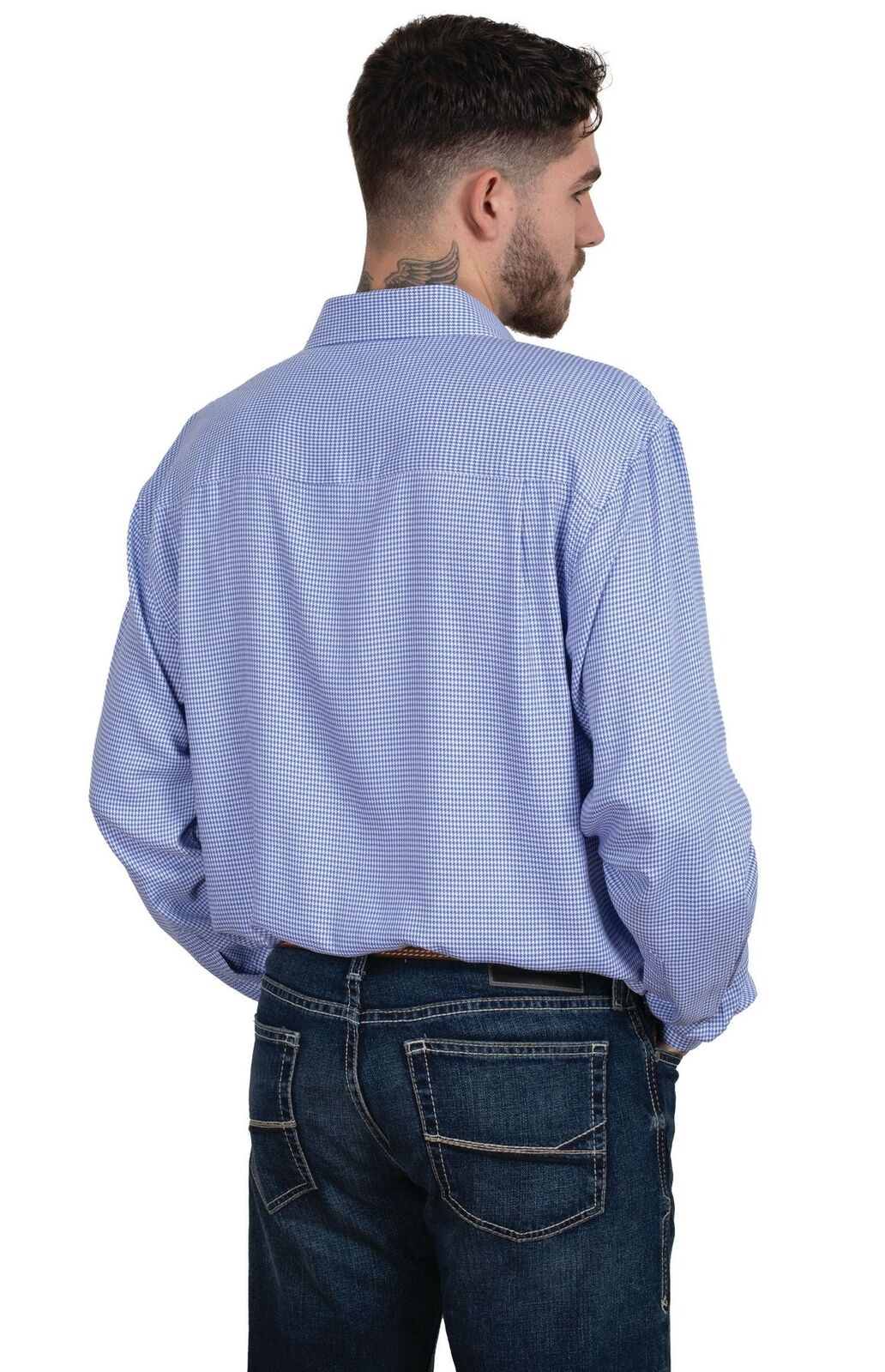 Just Country Mens Evan Bamboo Blend Full Button L/S Work Shirt (MBLS2402) Blue Houndstooth M