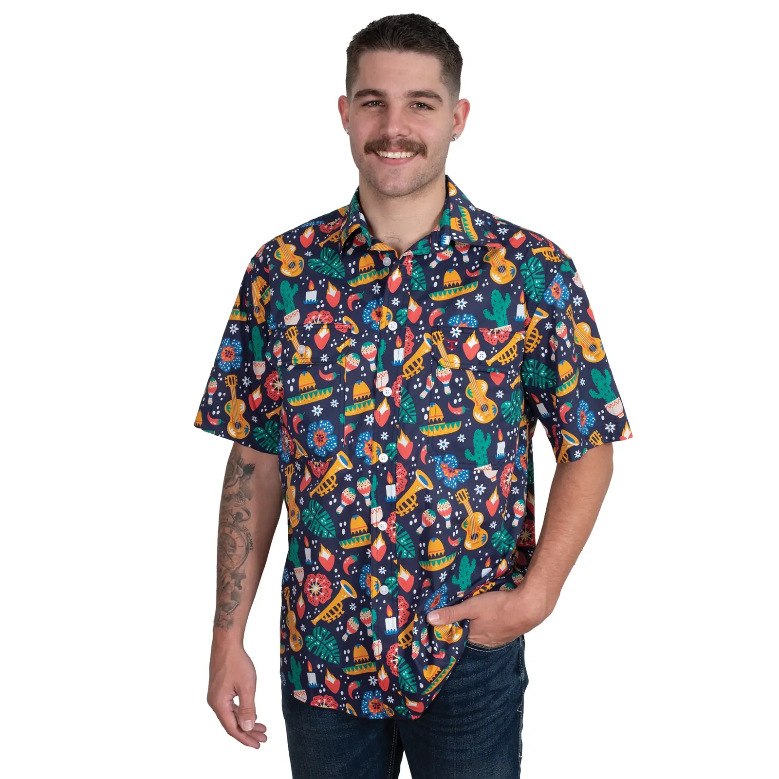 Just Country Mens Jordan Full Button S/S Print Shirt (MWSSR250) Navy Fiesta S [SD]