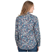 Just Country Womens Abbey Full Button Print L/S Work Shirt (WWLS2578) Navy Cottage Garden 8