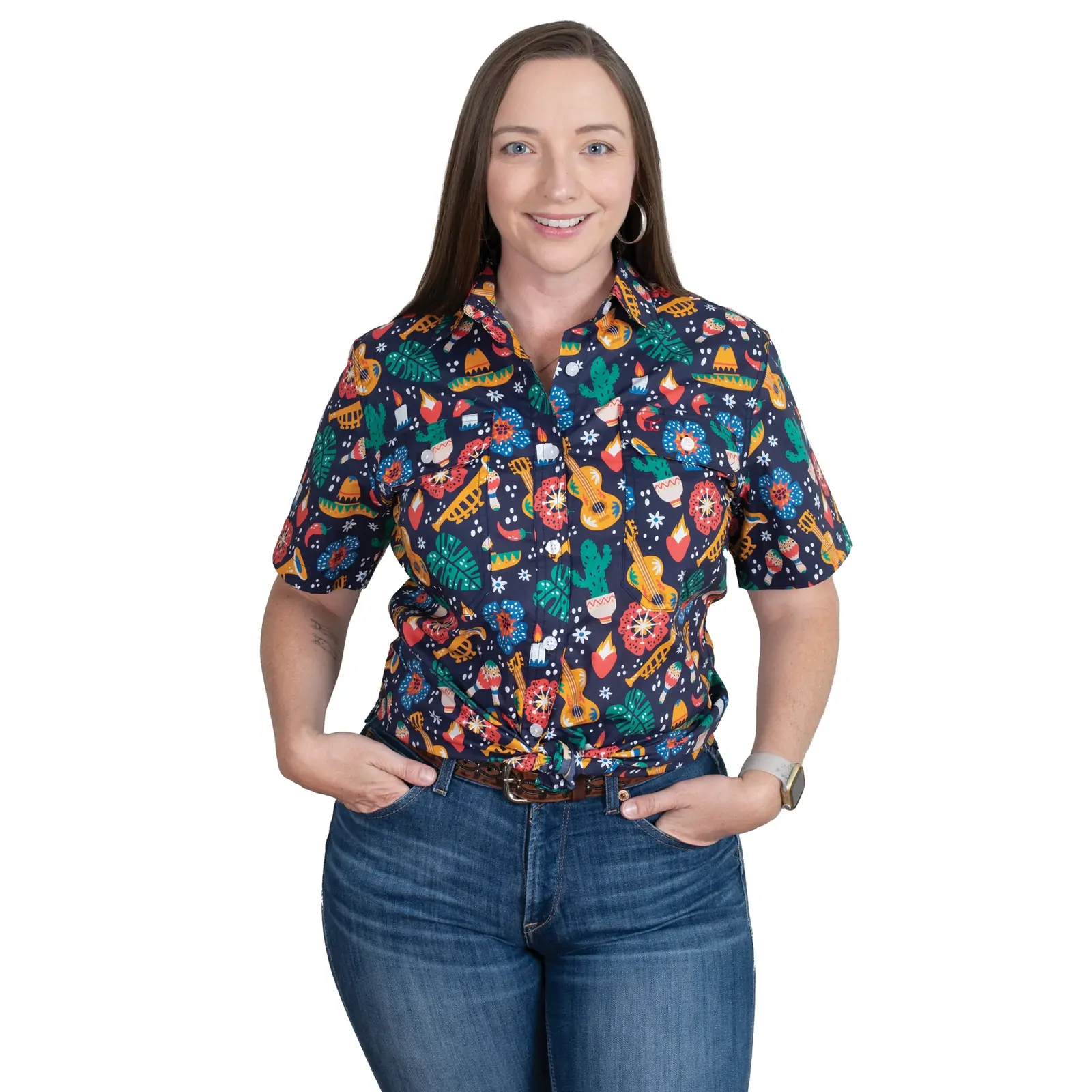 Just Country Womens Izzy Full Button S/S Print Shirt (WWSSR250) Navy Fiesta 8