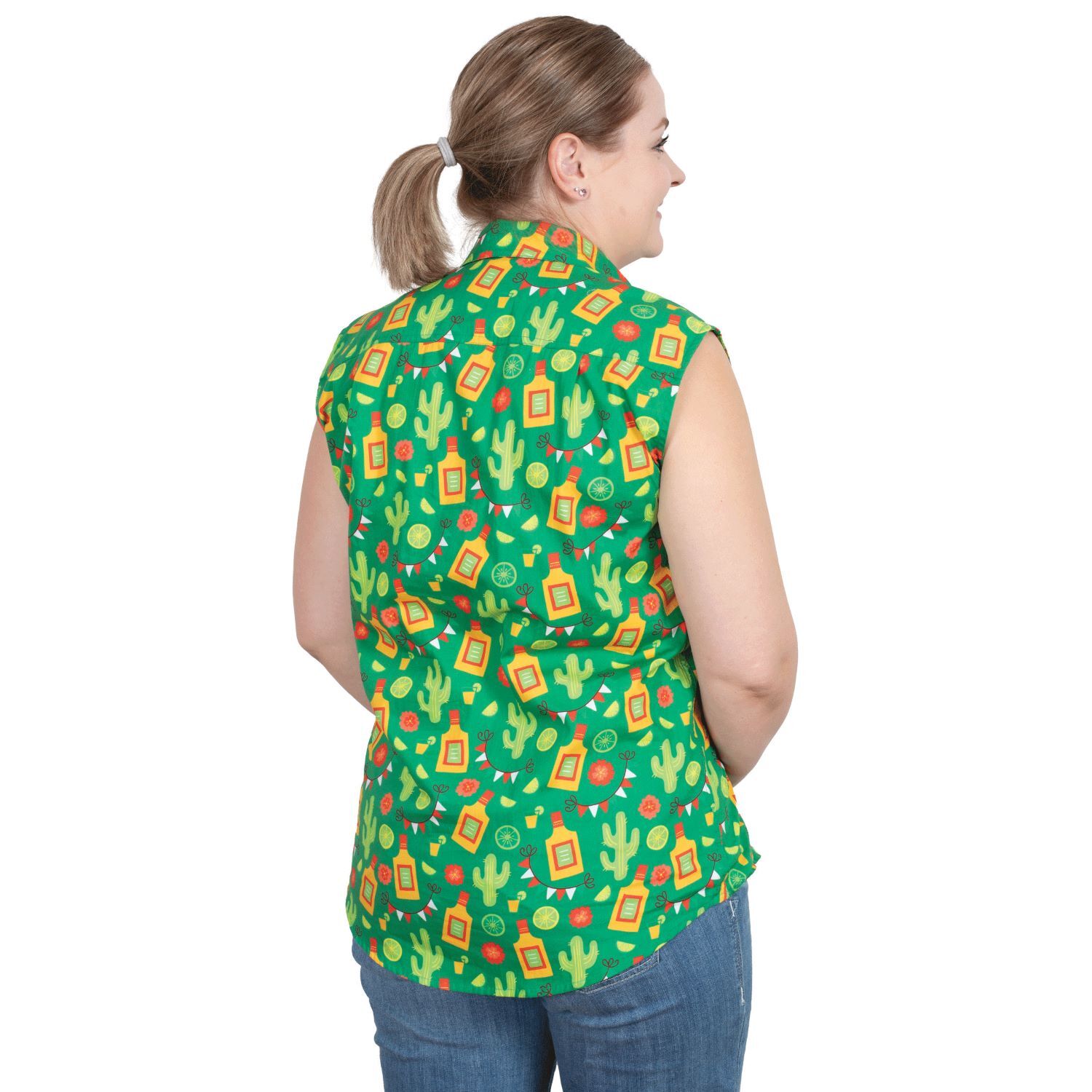 Just Country Womens Lilly Half Button Sleeveless Print Shirt (WWNSR241) Green Cactus 10 [SD]