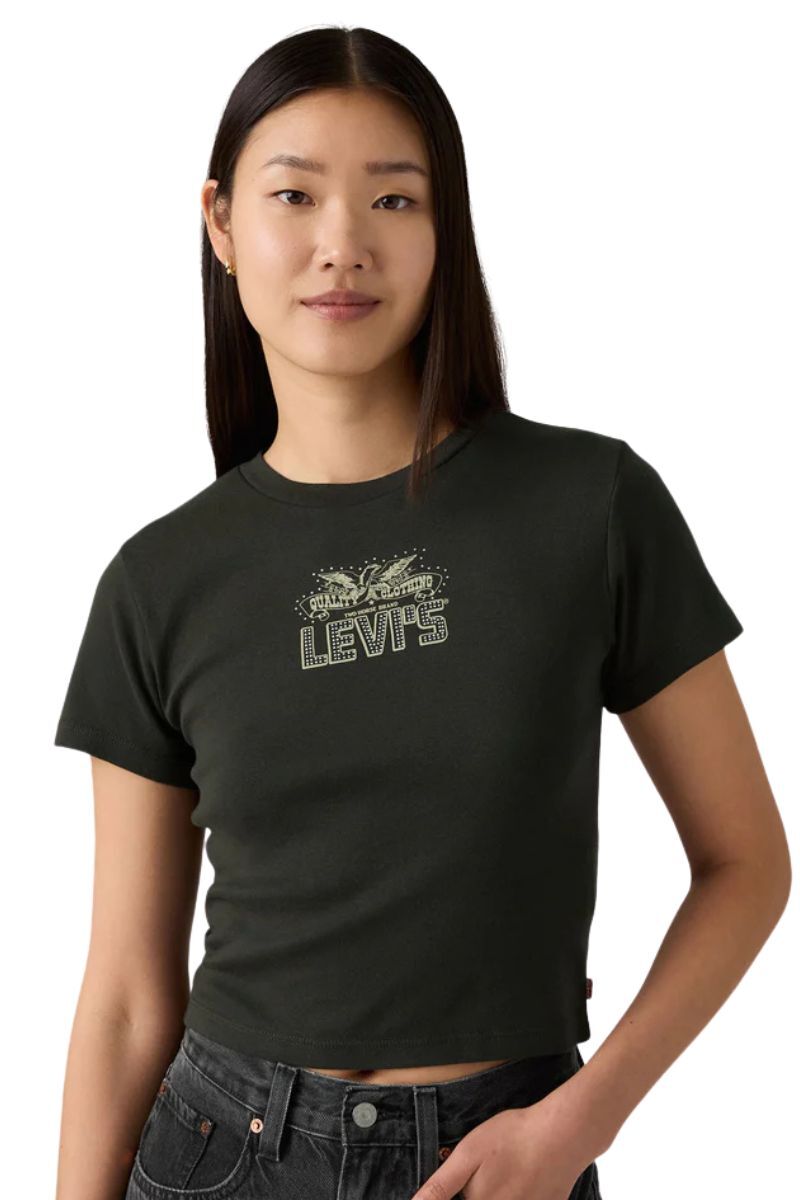 Classics like the Graphic Essential Sporty Tee never go out of style. Levi's made this one with an ultra-flattering neckline and a fitted cut—all topped off with a one-of-a-kind graphic design.
