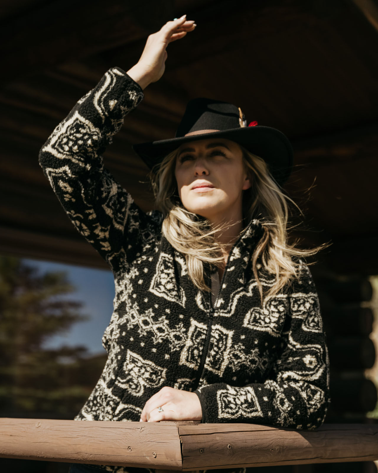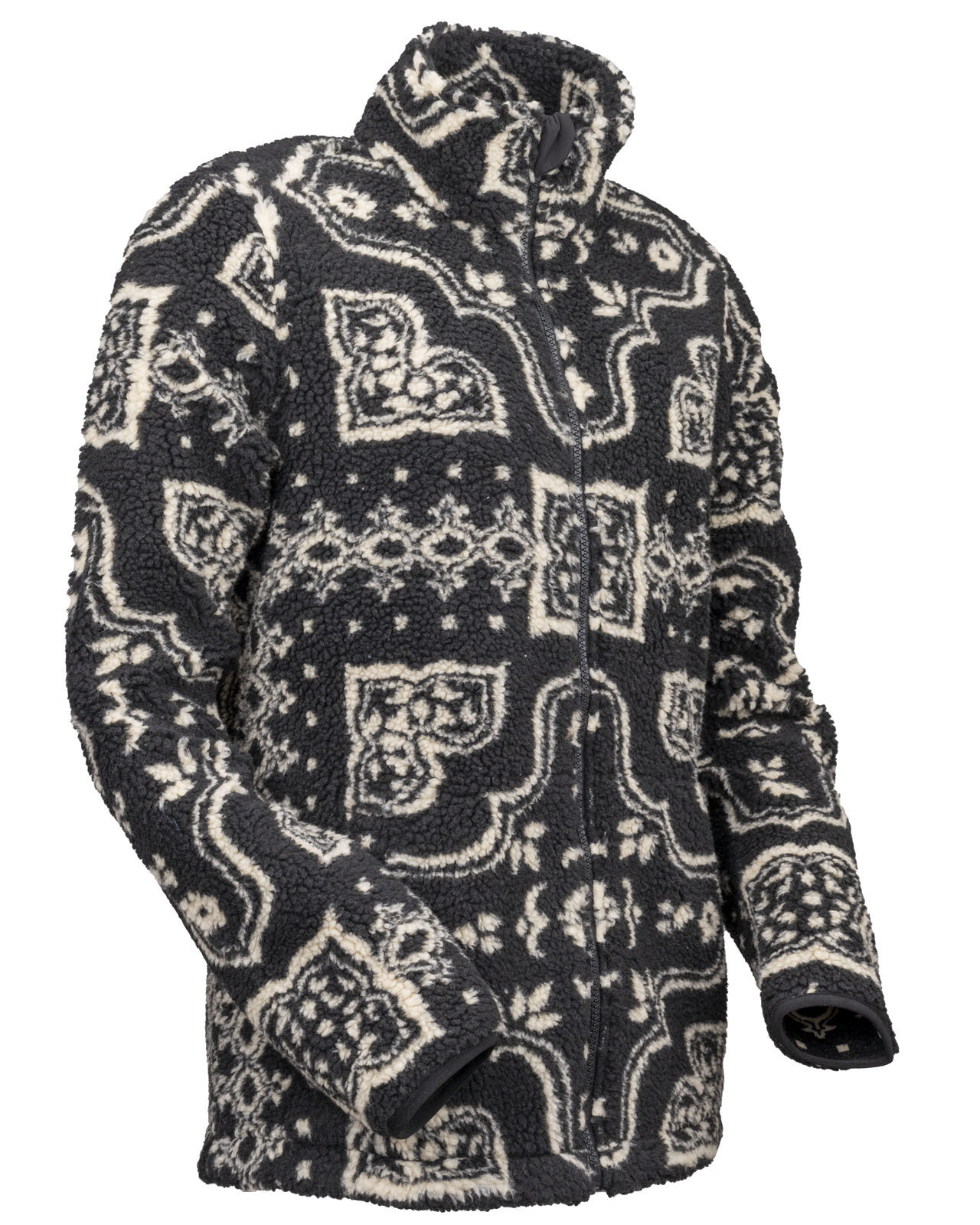 The Kelly Fleece Jacket features a bold western full-garment pattern and cosy fleece. She is your go-anywhere stand-out-everywhere new winter jacket!