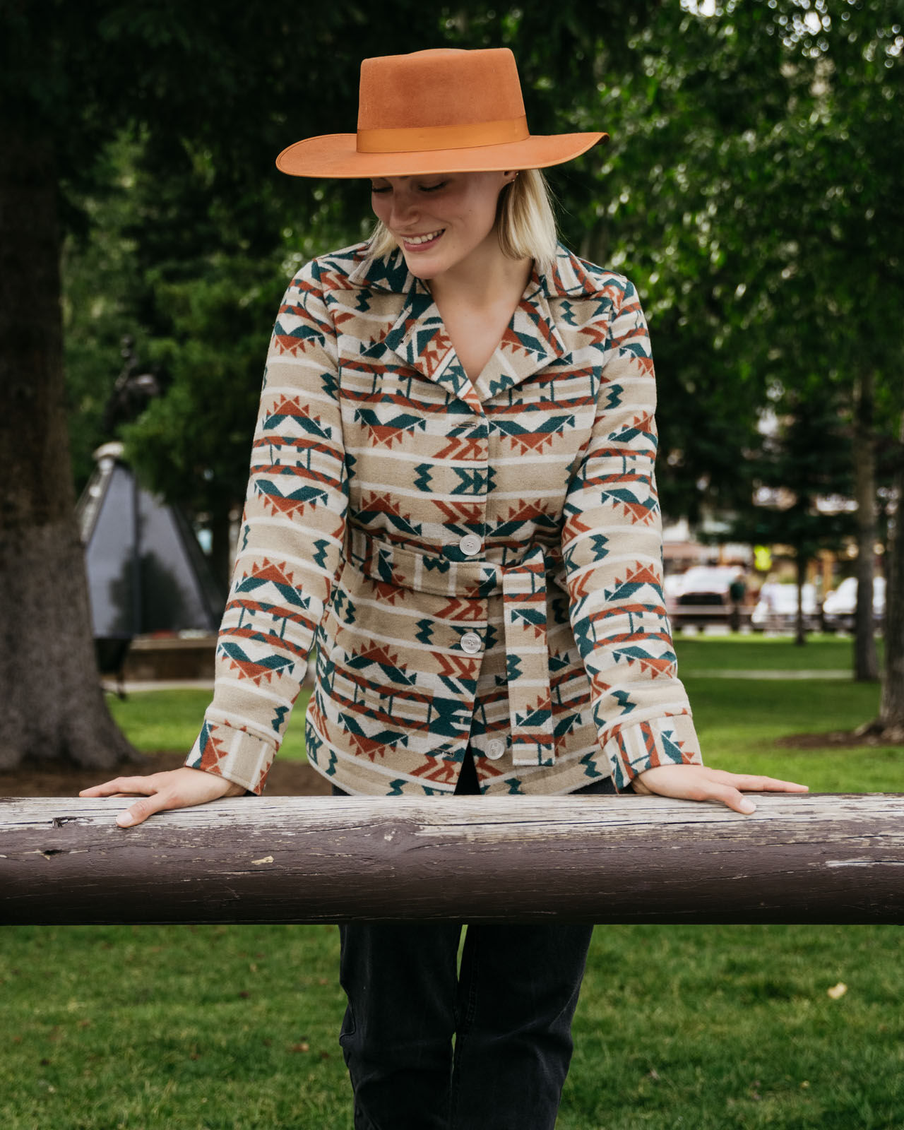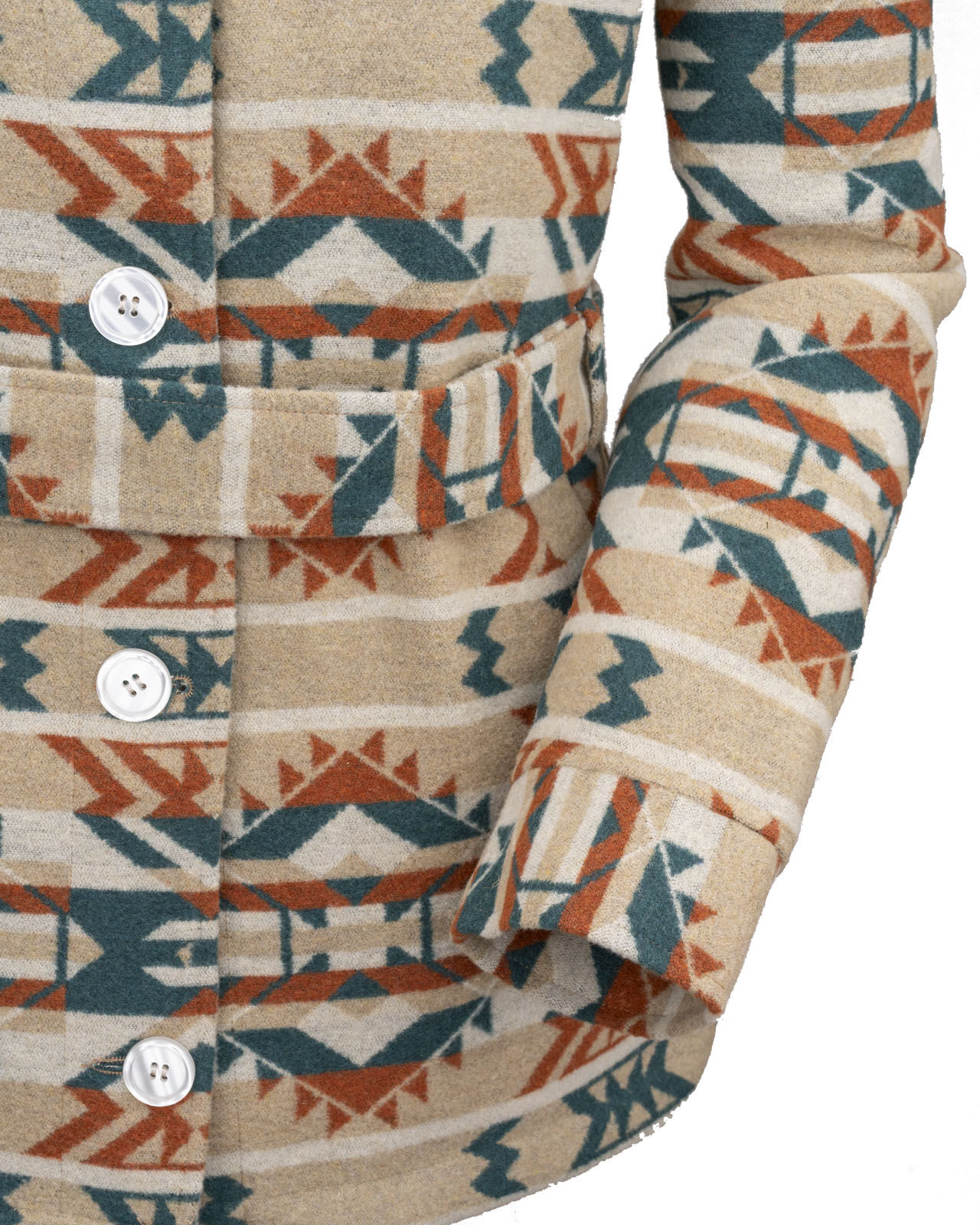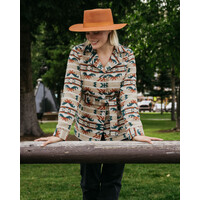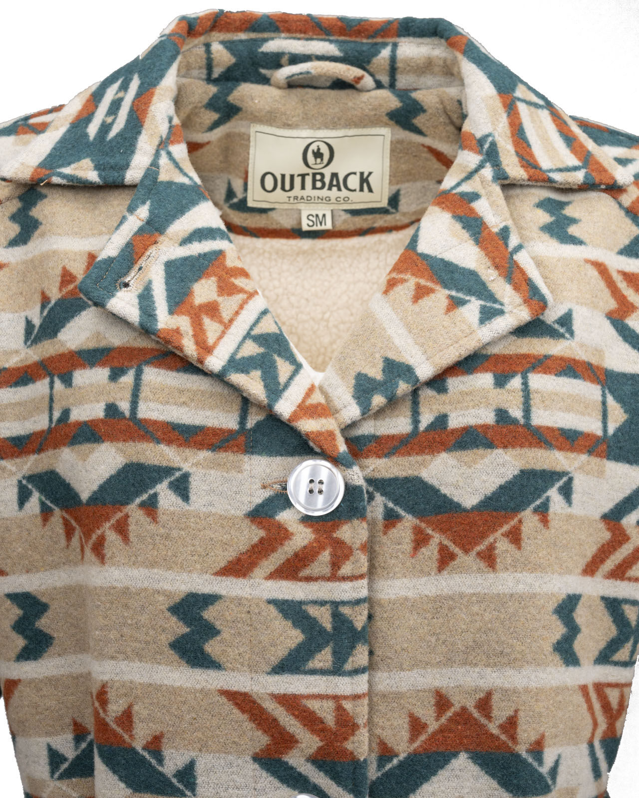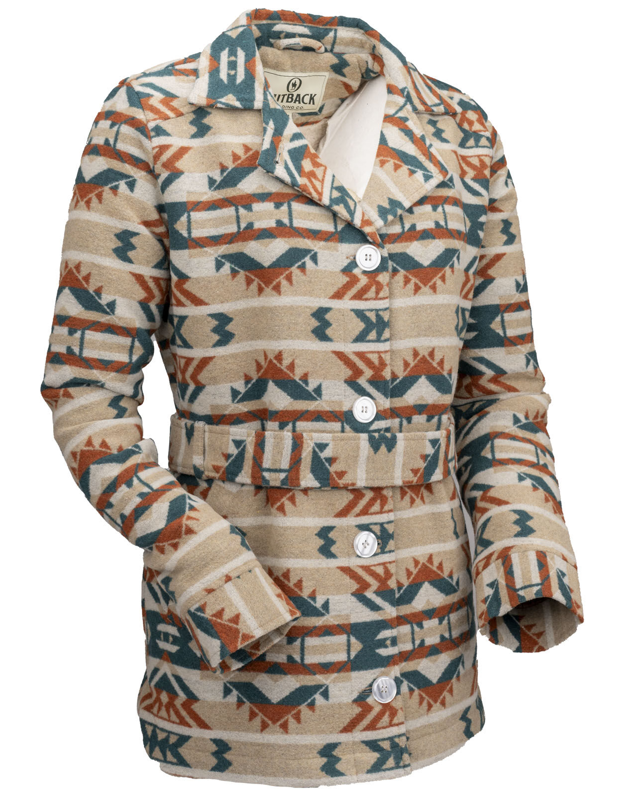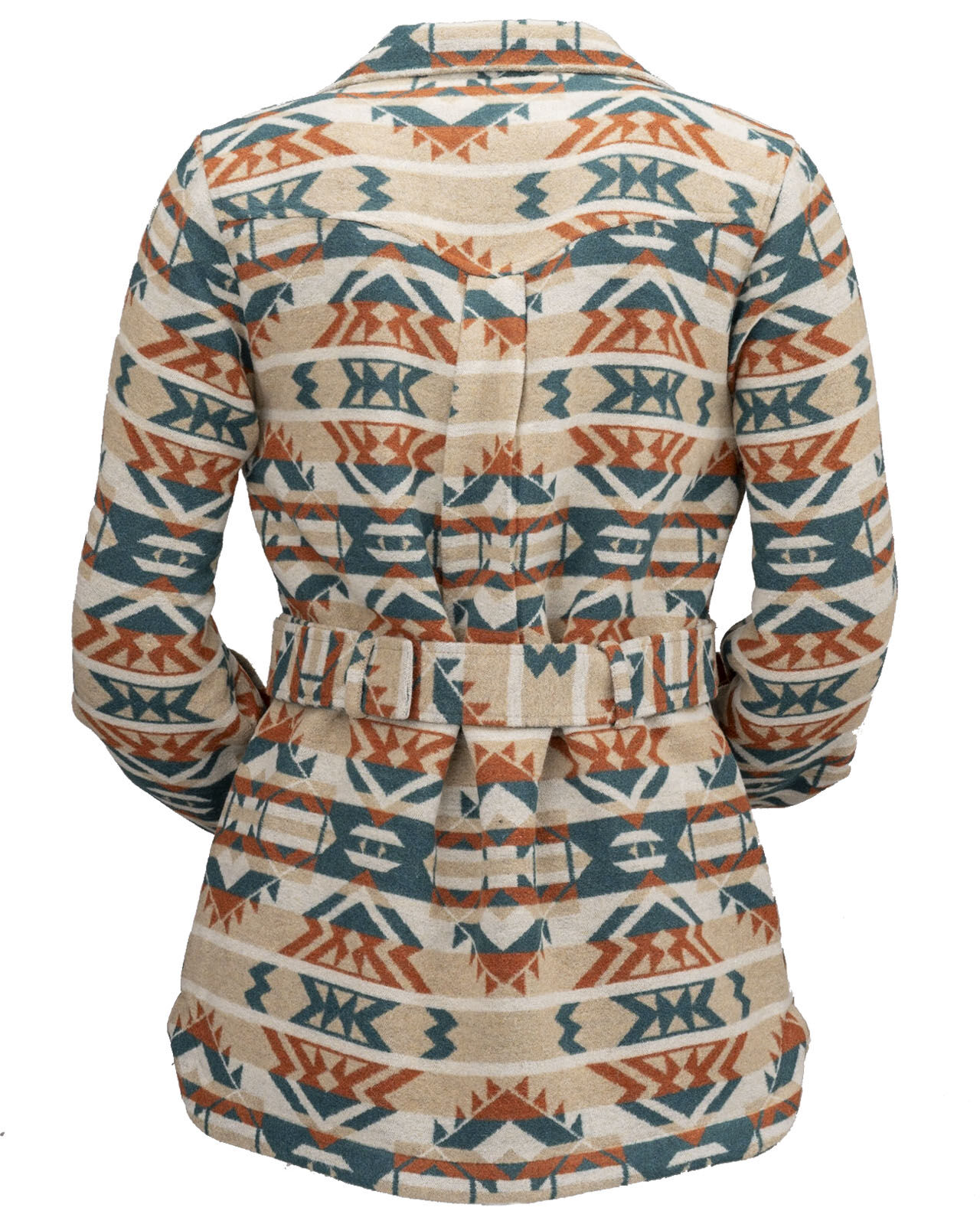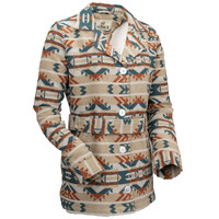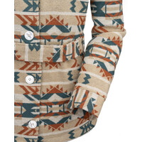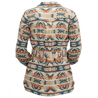 The Valarie Jacket is as beautiful as a desert sunset with its bold rust, tan, and turquoise Aztec pattern. Lined in a cozy Berber fleece for warnth, with a belt to give you a great shape, you'll be stepping out with confidence in the Valarie jacket!