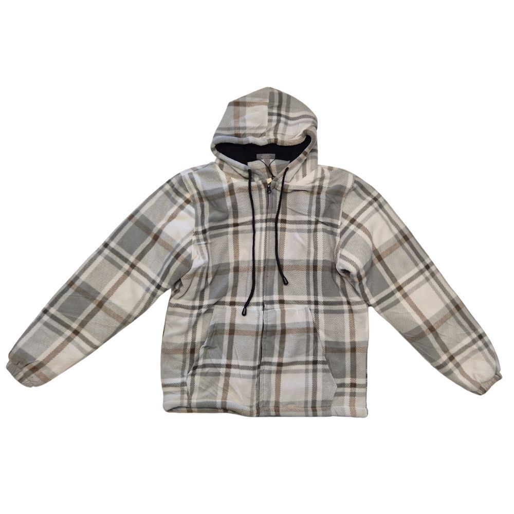 Brave the cold in comfort with this full zip sherpa jacket, designed to keep you warm without the bulk. Lined with ultra-soft sherpa fleece, it features a drawstring hood for extra coverage, cuffed sleeves to lock in heat, and two handy front pockets for warmth or storage