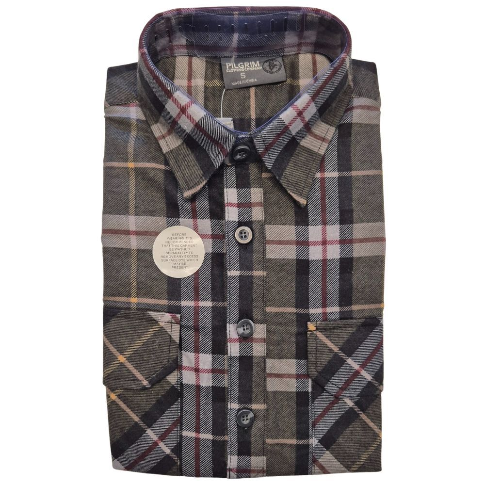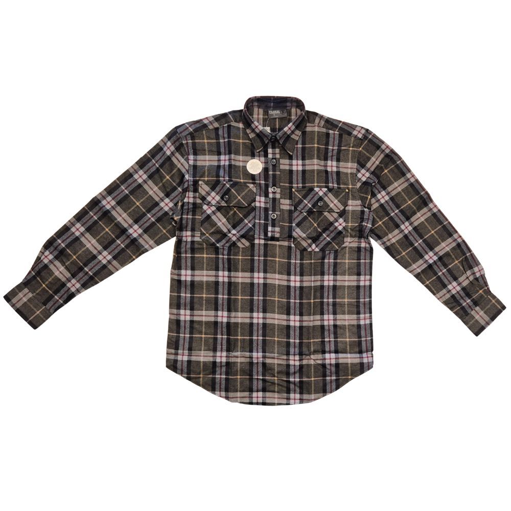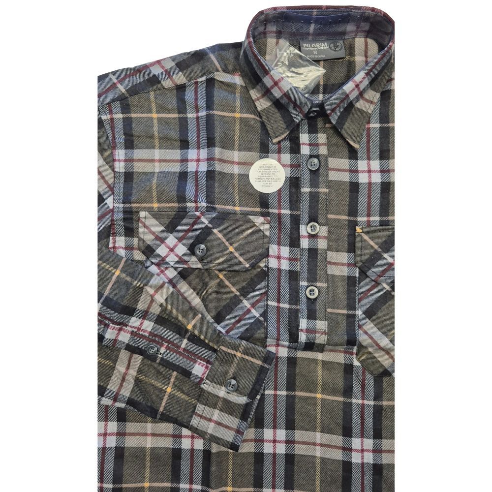 Pilgrim Clothing Mens Half Button L/S Flannelette Shirt (3141) Khaki L [GD]