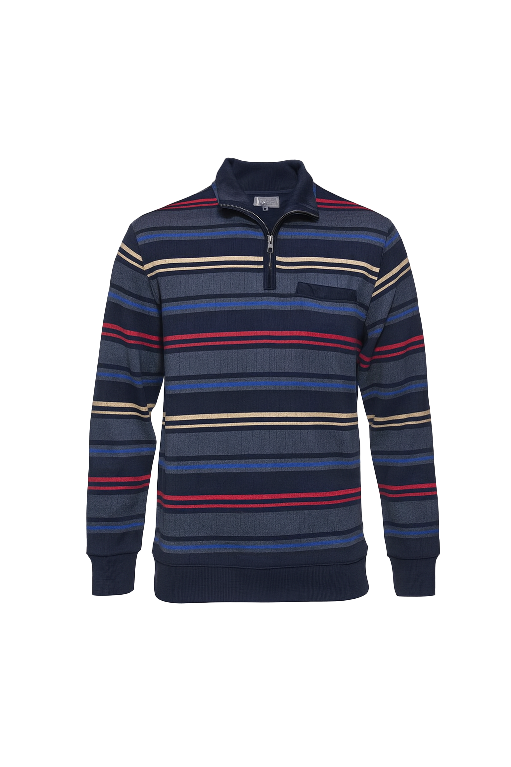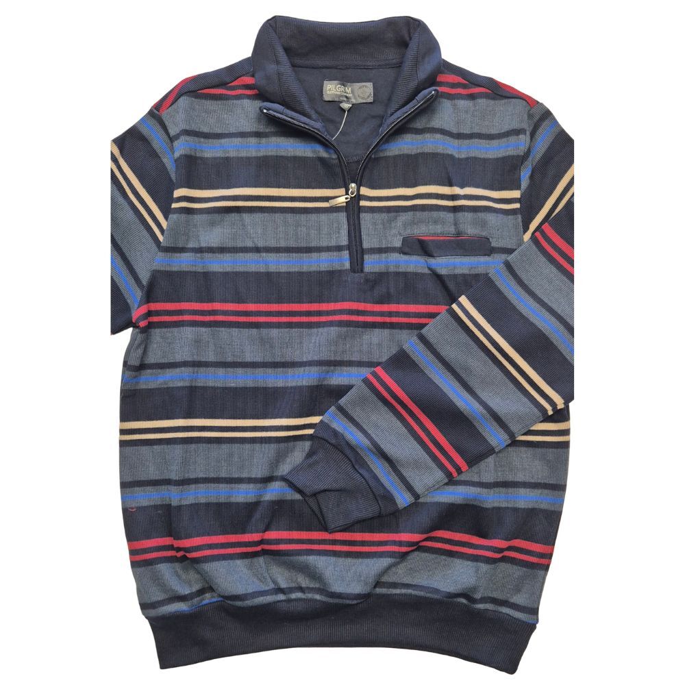 Pilgrim Clothing Mens Quarter Zip French Rib Jumper (3125) Navy/Berry L [GD]