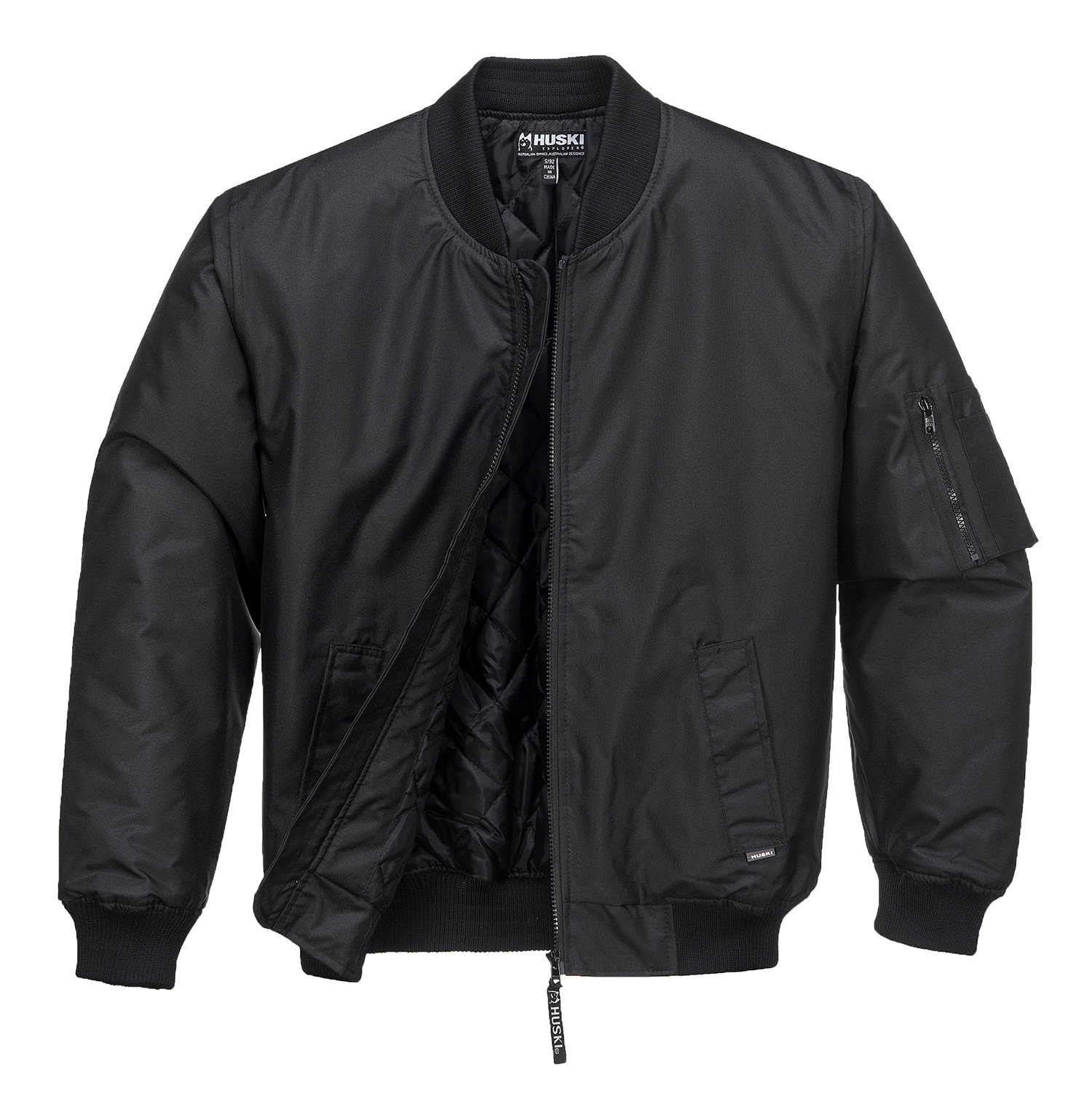 Solid colour bomber jacket, fully lined with quilted lining, features pocket zips, knit collar, cuffs & hem. UPF50+