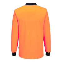 Cotton Comfort Long Sleeve Polo shirt, Chest pocket, Contrast navy to lower body, 3 button placket, rib collar and cuff in contrast navy.
