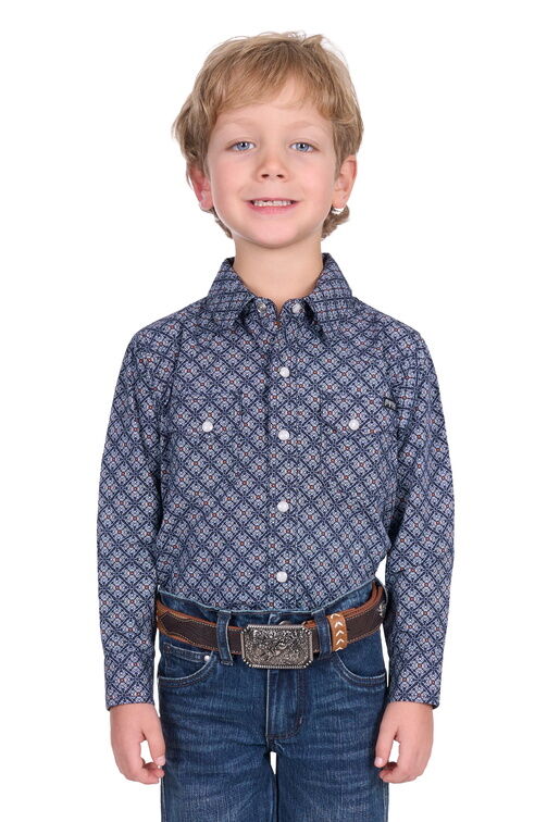 Pure Western Boys Douglas L/S Shirt (P5S3100070) Navy/White 4