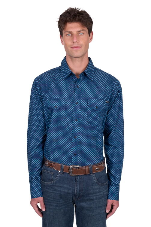 Pure Western Mens Brandon L/S Shirt (P5S1100072) Navy/Blue S