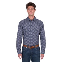 Pure Western Mens Douglas L/S Shirt (P5S1100070) Navy/White S