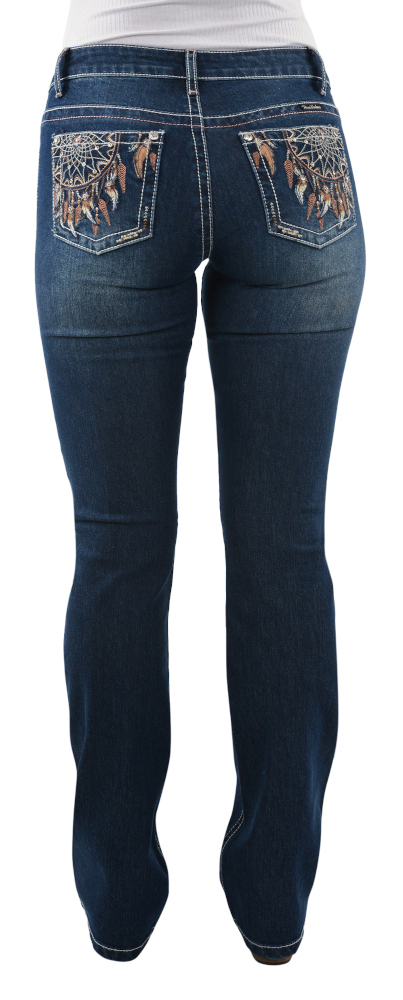Lola jeans feature embroidery that includes the icons of western design - dream catchers and feathers - that are further embellished with diamanté rivets.