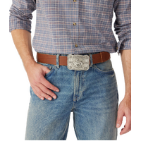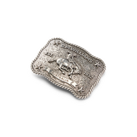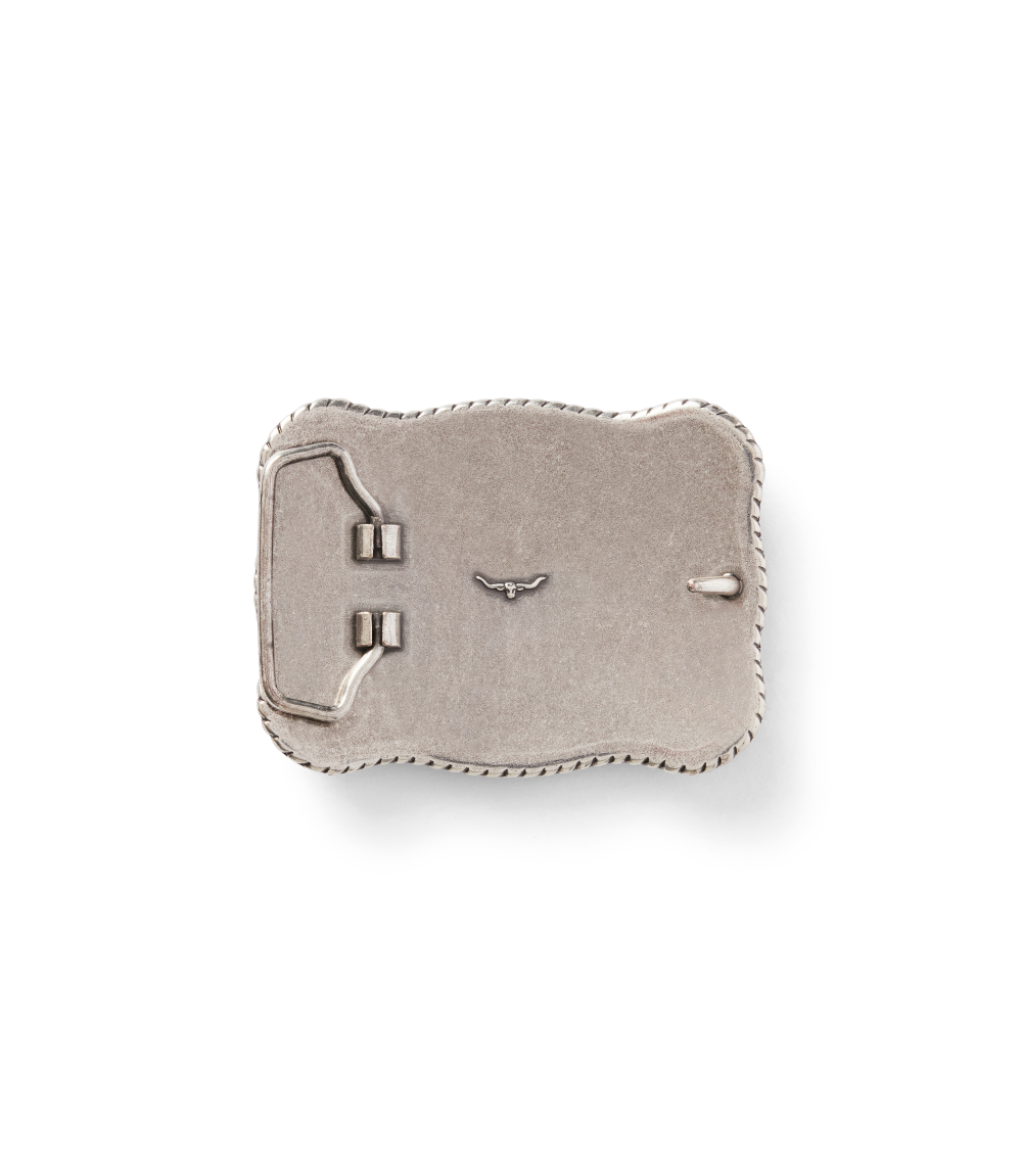A trophy buckle with an antique silver finish and a design inspired by the iconic cloudbuster image captured by Hoofs & Horns Magazine. This style can be added to the Traditional Belt.