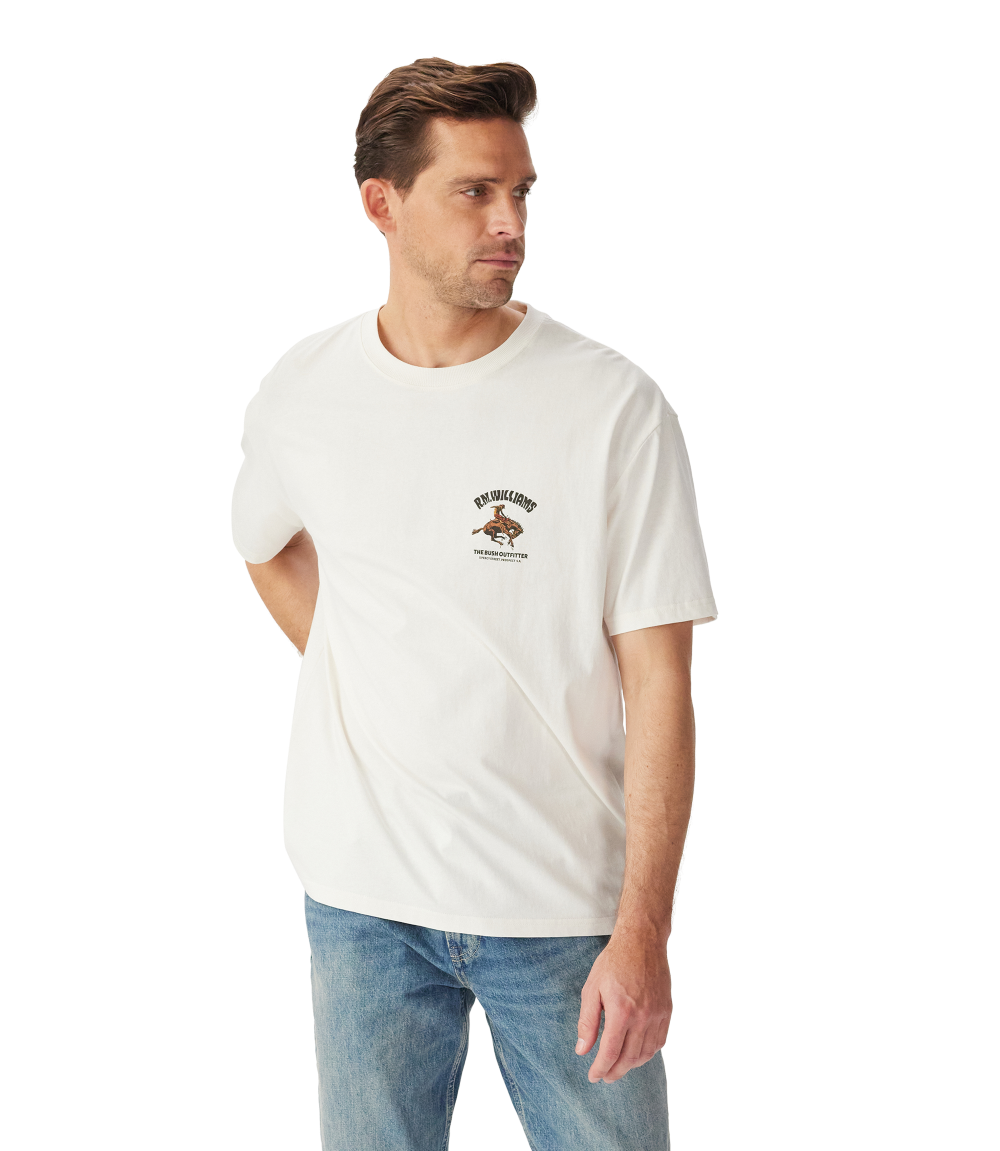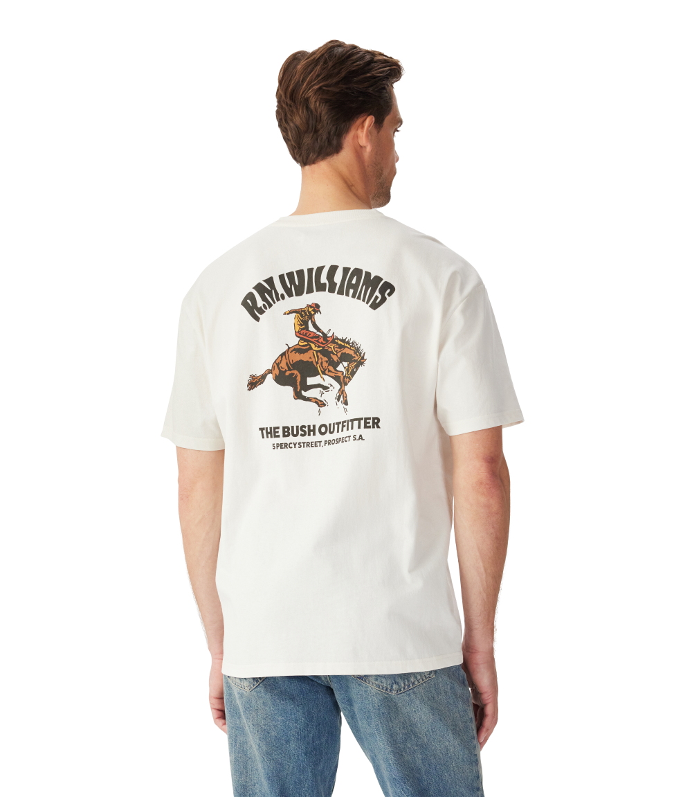 Crafted from soft organic cotton jersey, this easy-wearing style is complete with a Cloudbuster motif in homage to our rich history of connection with Australian rodeos.
