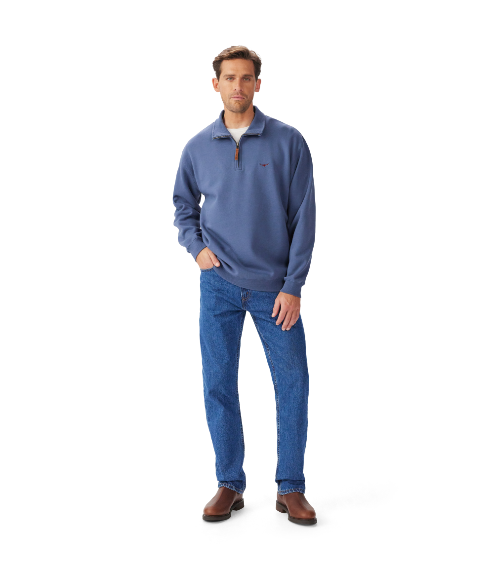 R.M.Williams bestselling quarter-zip sweatshirt in classic cotton jersey is an easy-wearing staple, refreshed in a seasonal hue. It's finished with a branded puller and signature embroidery.
