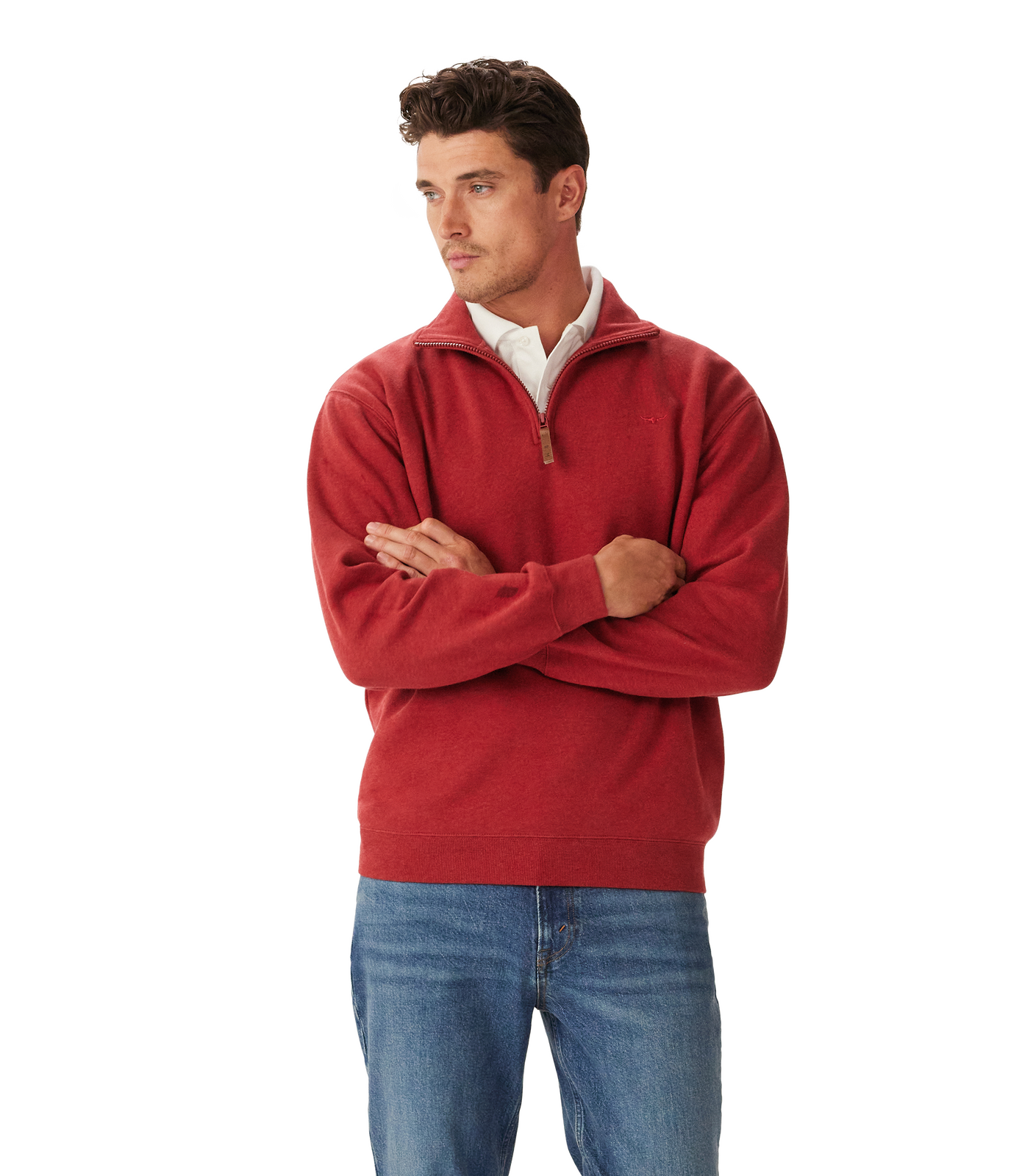 This seasonal edition of the Mulyungarie quarter zip features a leather puller, full-length sleeves, ribbed cuffs, a straight hem, and Longhorn chest embroidery. Crafted from an organic cotton blend brushed fleece, itÕs both classic and comfortable.