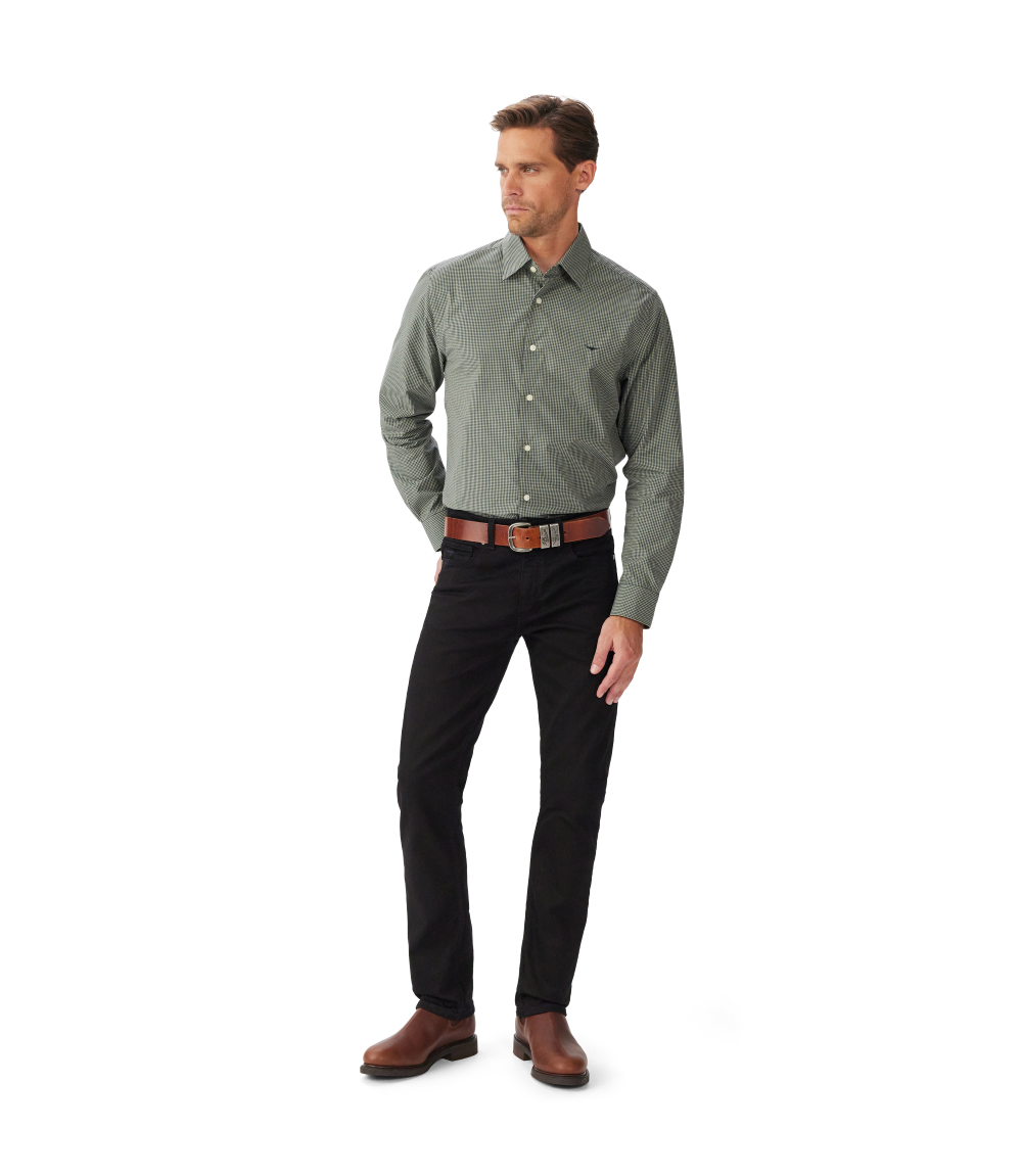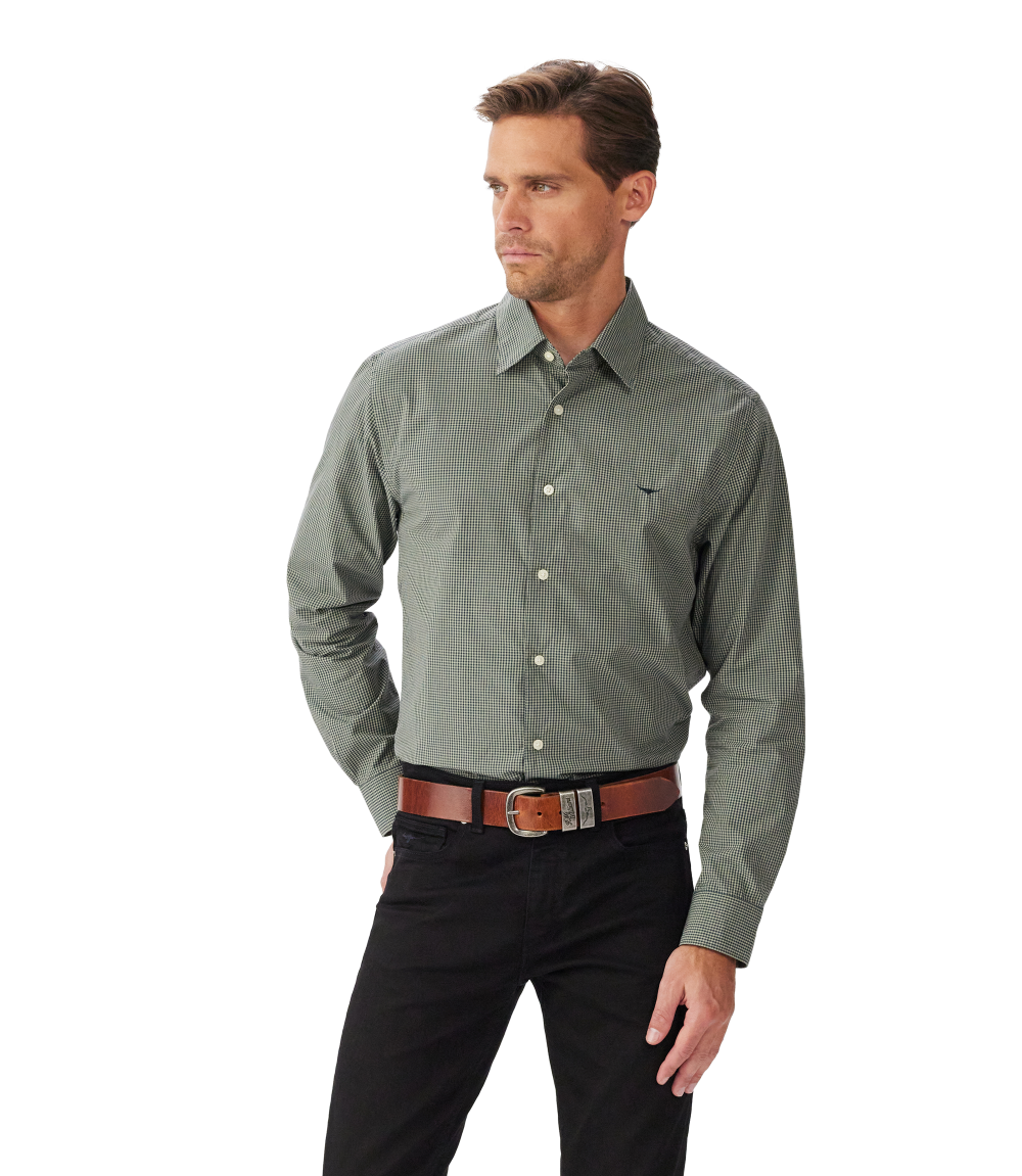 R.M.Williams Mens Parkes Regular Poplin L/S Shirt (SH200PS01) Sage Navy L