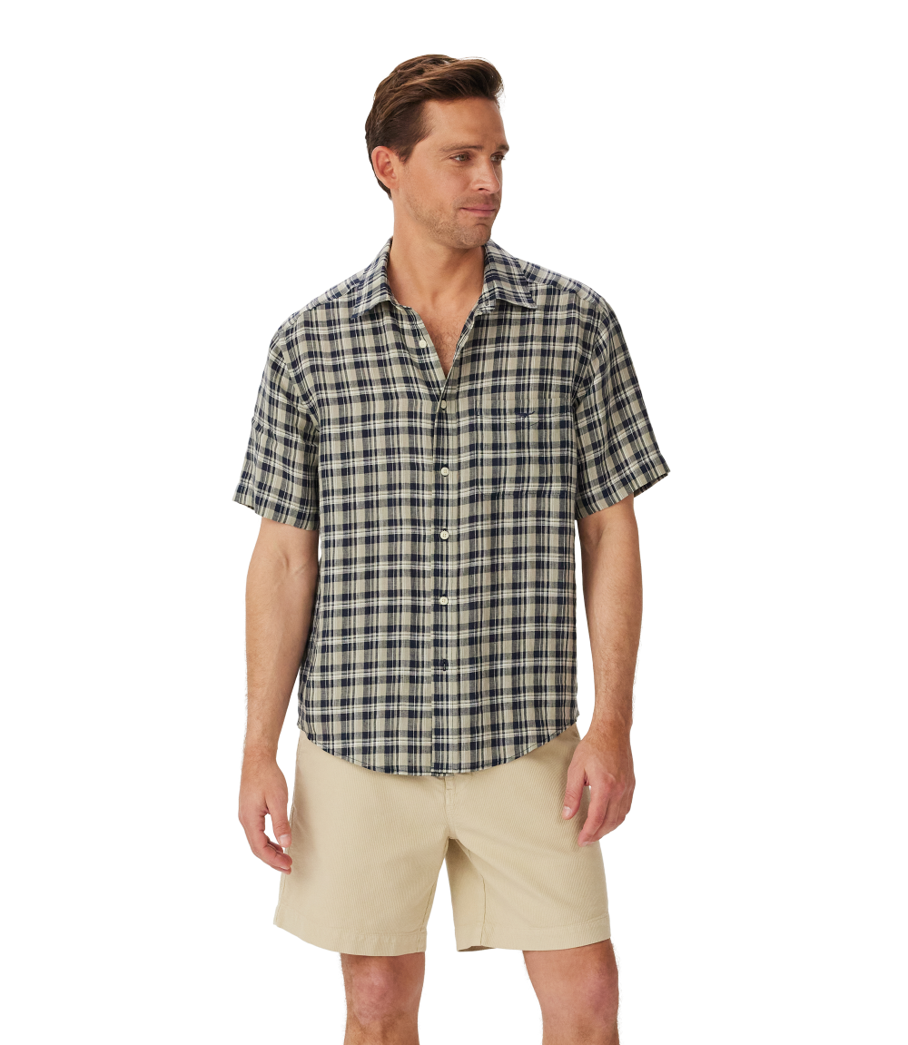 Warm weather dressing is made easy with this relaxed short sleeve shirt, crafted from premium French linen and finished with a chest pocket and contrast Longhorn embroidery.