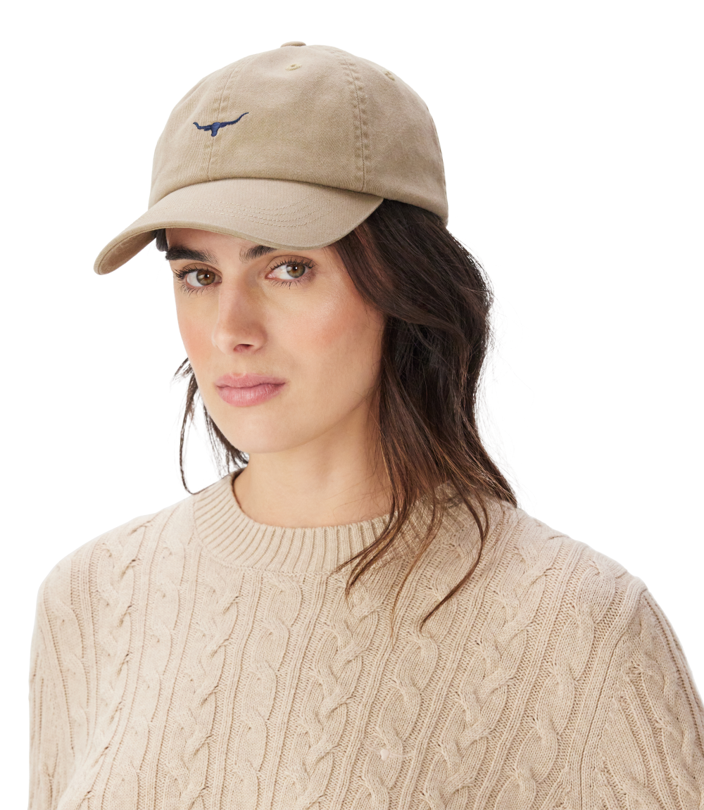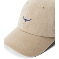 Crafted from 100% organic cotton twill, this cap features an embroidered mini Longhorn logo and an adjustable strap with a brass branded logo metal clasp.