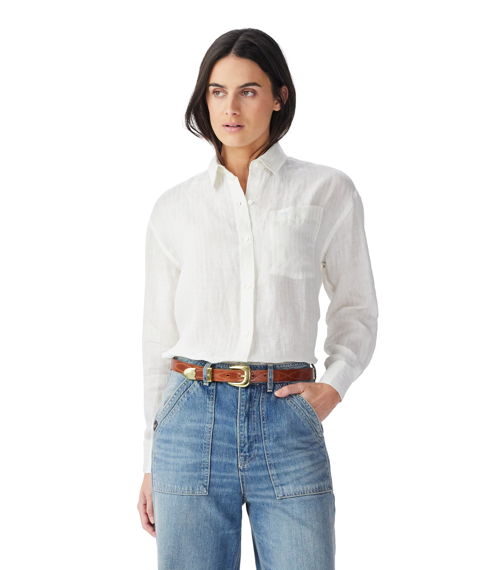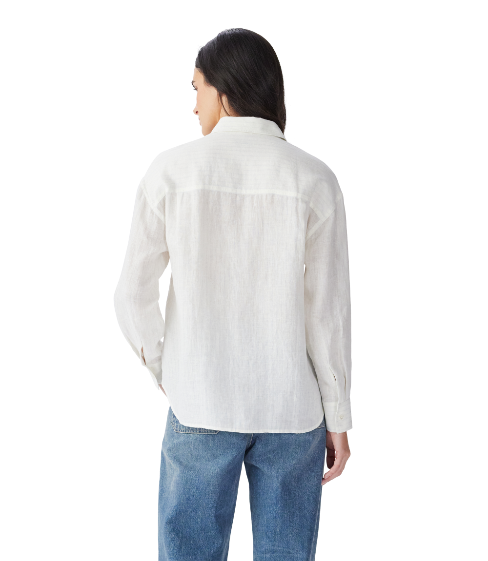 Crafted from French linen, this relaxed-fit shirt features a regular collar, front placket with contrast buttons, full-length sleeves with single-button cuffs and subtle branded embroidery.