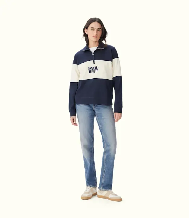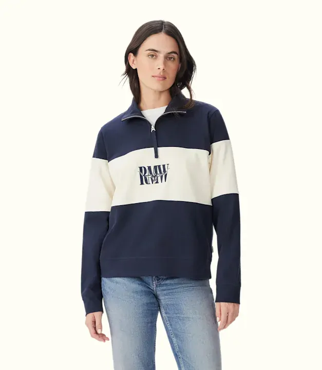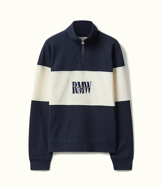 R.M.Williams' bestselling quarter zip silhouette, reimagined with classic sportswear-inspired panelling. Crafted from organic cotton, this style features a zip neck and Heritage logo embroidery on the chest.