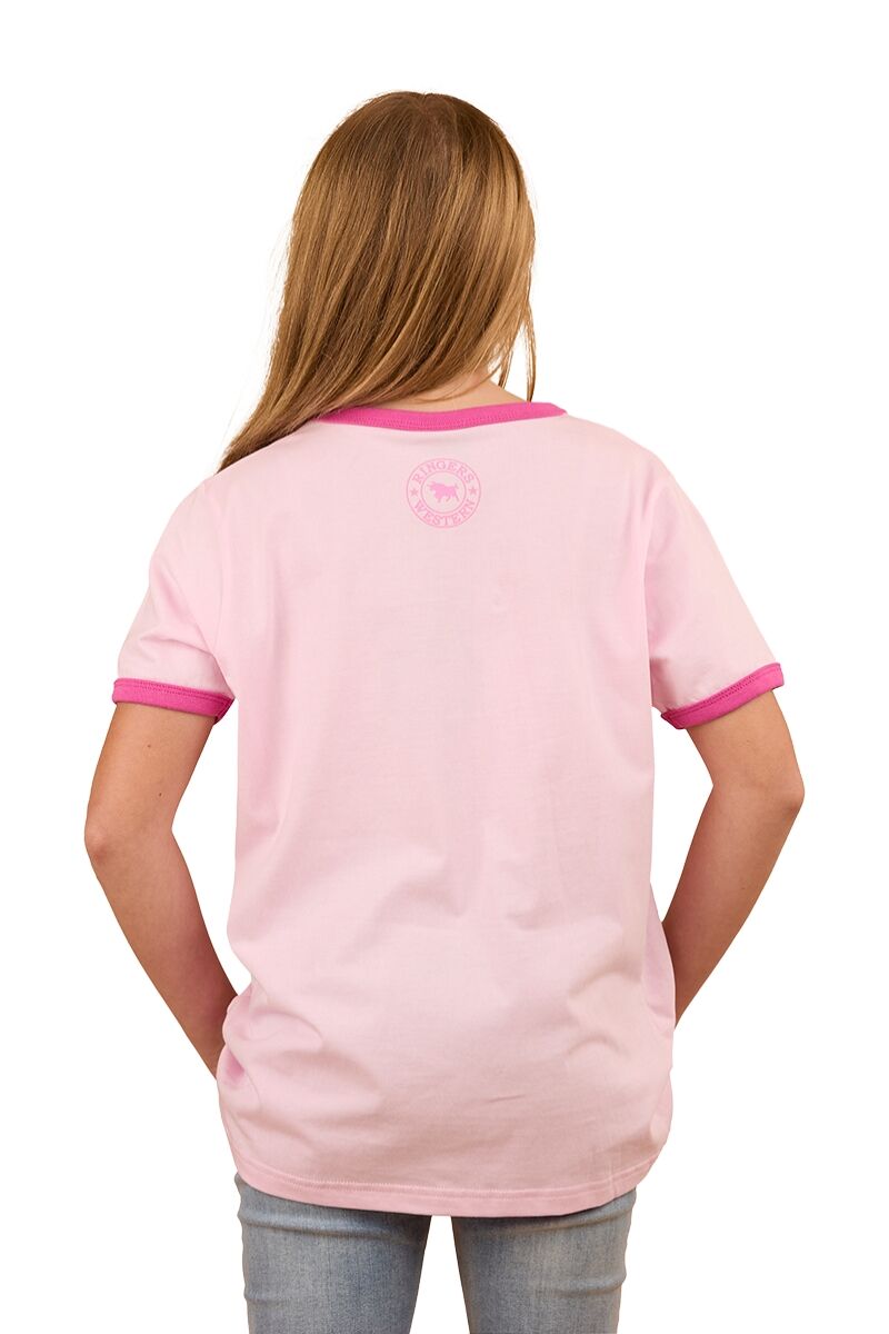 Ringers Western Childrens Howdy Cowgirl Ringer S/S Tee (324020RW) Ballet Pink 4