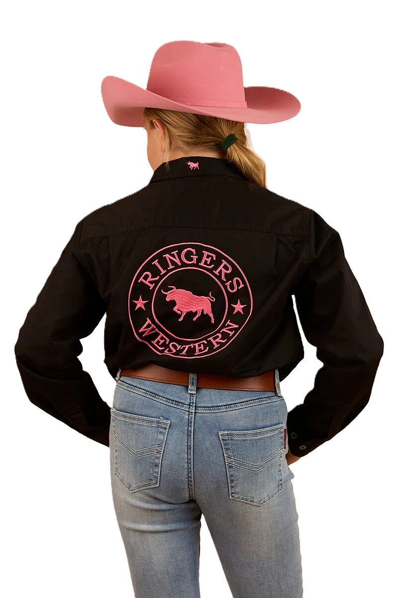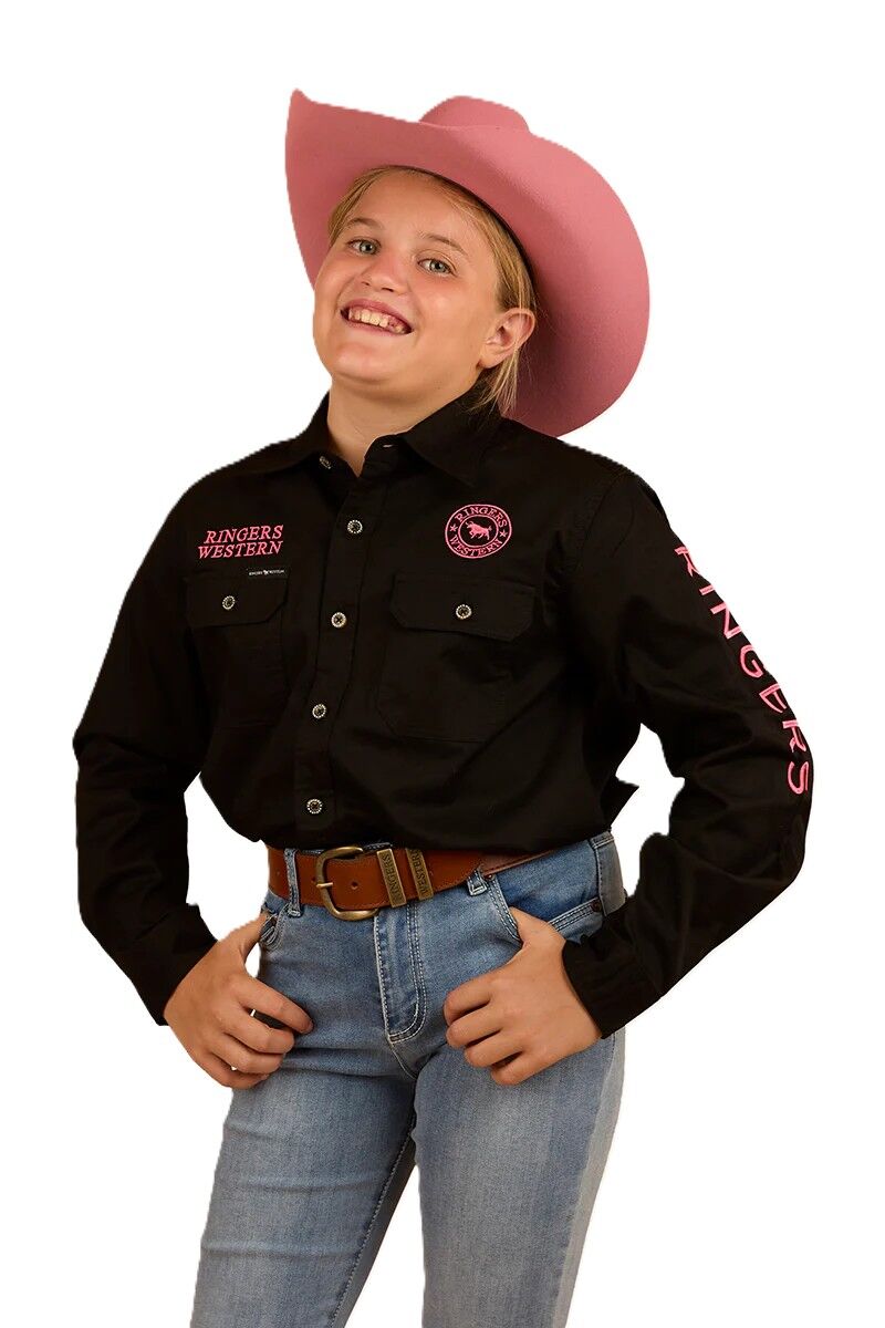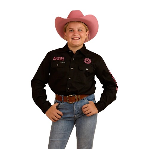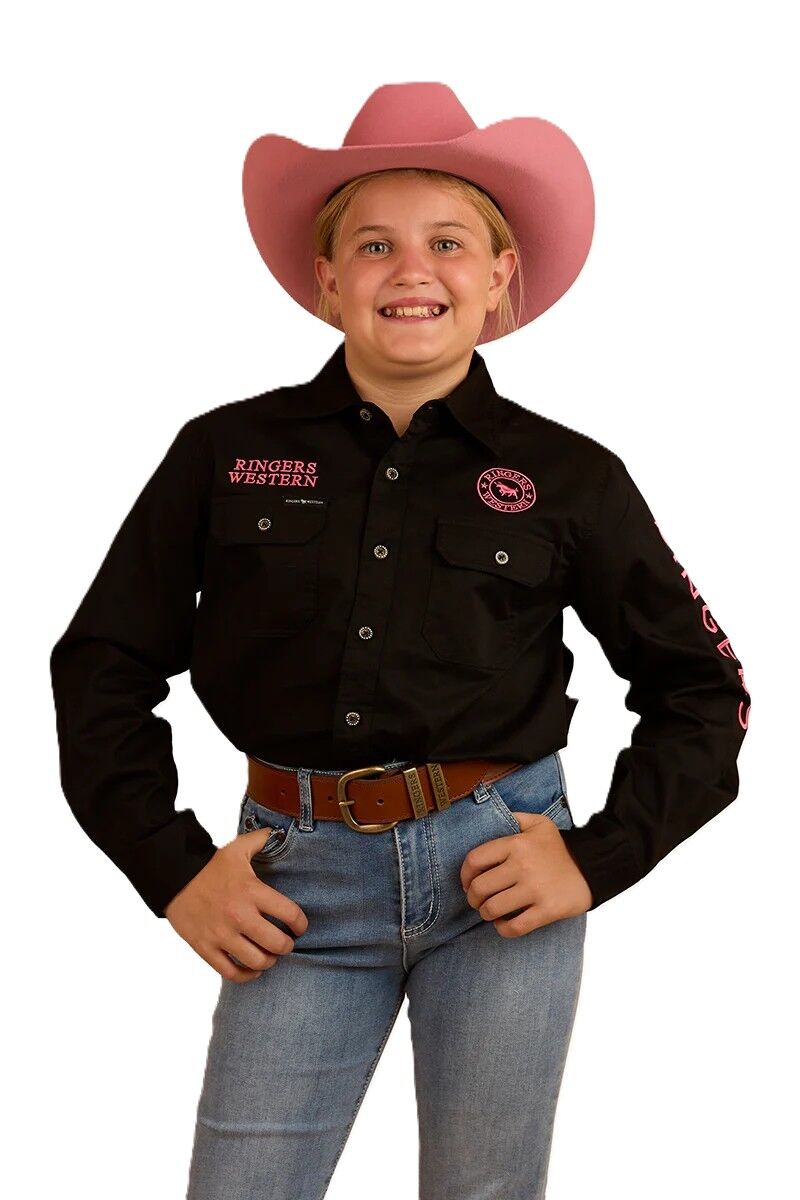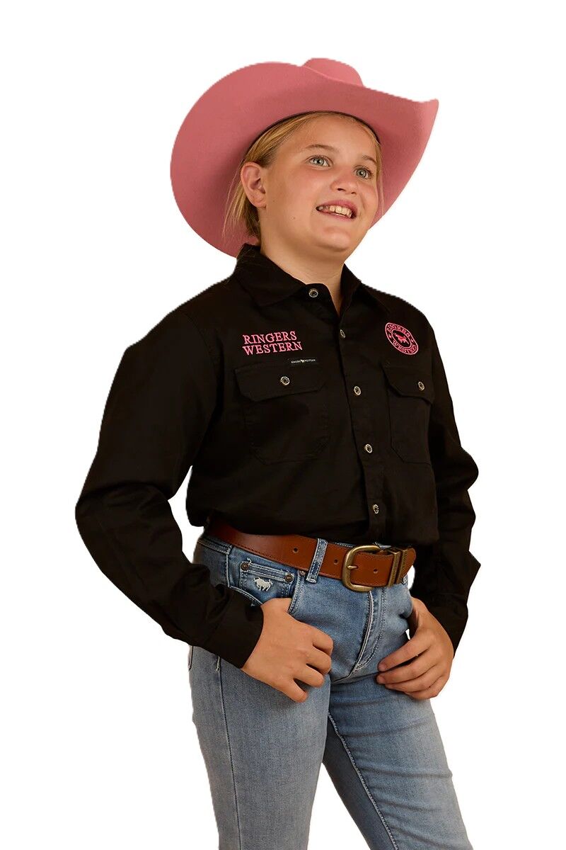 Ringers Western Childrens Jackaroo Full Button L/S Workshirt (321012RW) Black/Melon 2 [SD]