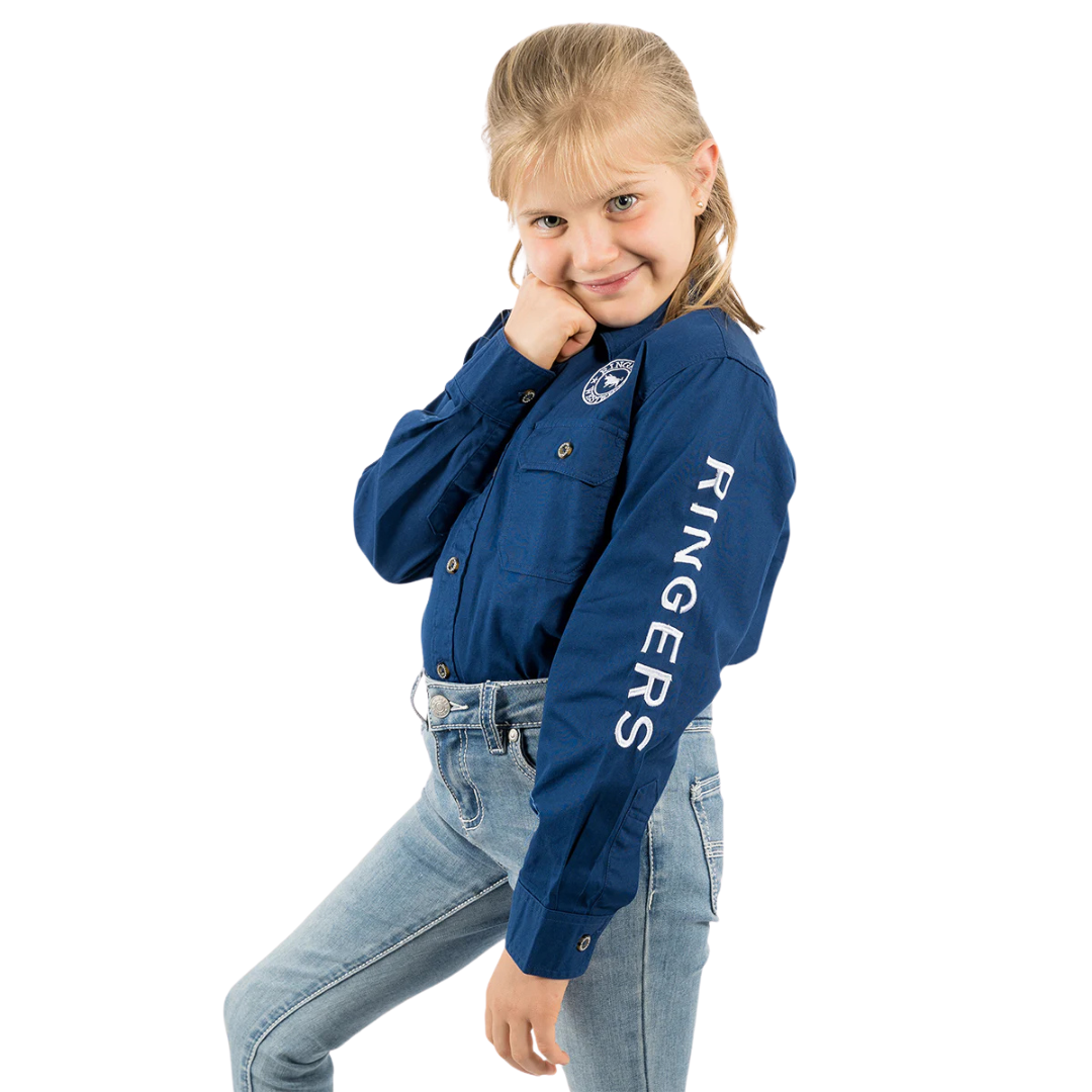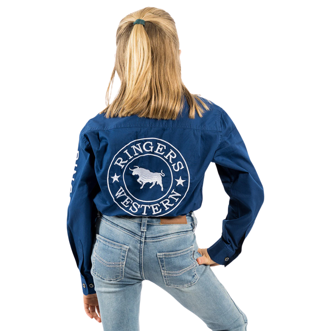 Ringers Western Childrens Jackaroo Full Button L/S Workshirt (321012RW) Navy/White Embroidery 4