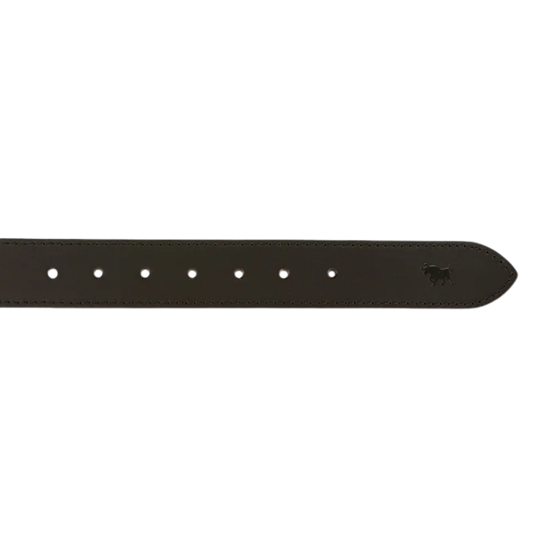 The James Belt is a premium 100% genuine leather belt. With unbeatable craftsmanship and attention to detail, you'll never want another belt. Now available for the little ones! Made with tawny brown leather and silver brass keepers, this kid's belt features a subtle embossed signature bull on the tail and intricate Ringers Western engraving for a luxurious finish.