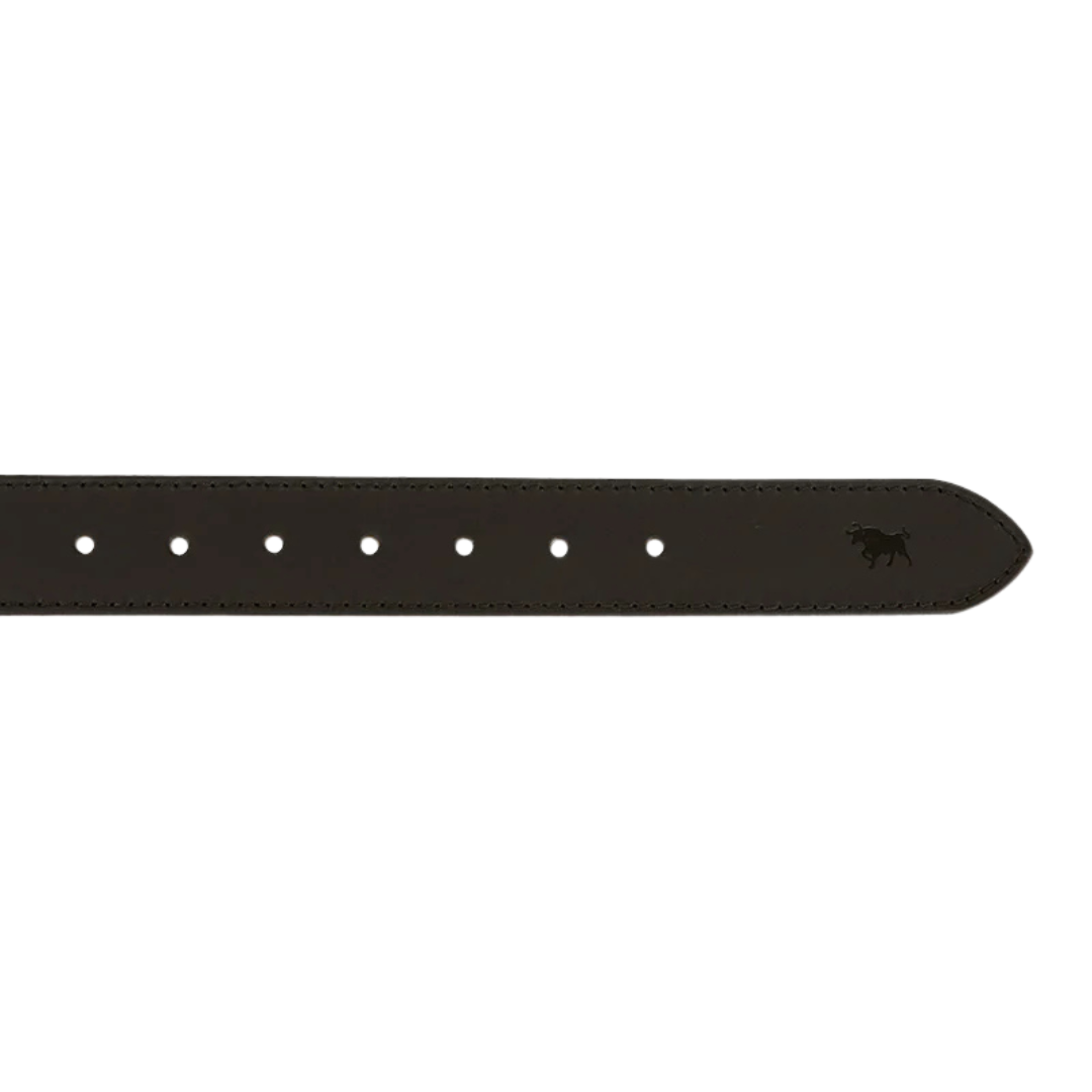The James Belt is a premium 100% genuine leather belt. With unbeatable craftsmanship and attention to detail, you'll never want another belt. Now available for the little ones! Made with tawny brown leather and silver brass keepers, this kid's belt features a subtle embossed signature bull on the tail and intricate Ringers Western engraving for a luxurious finish.