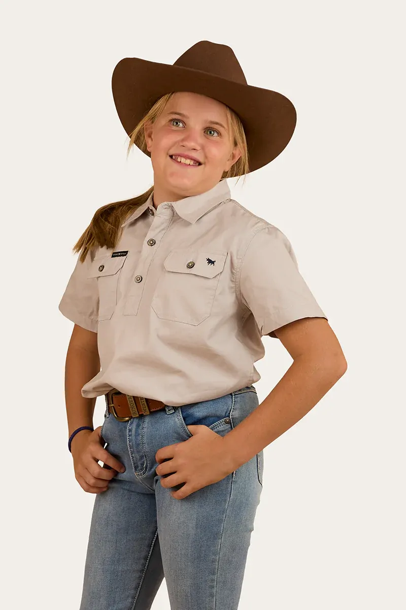 Ringers Western Childrens Ord Half Button S/S Work Shirt (321010RW) Beige 2