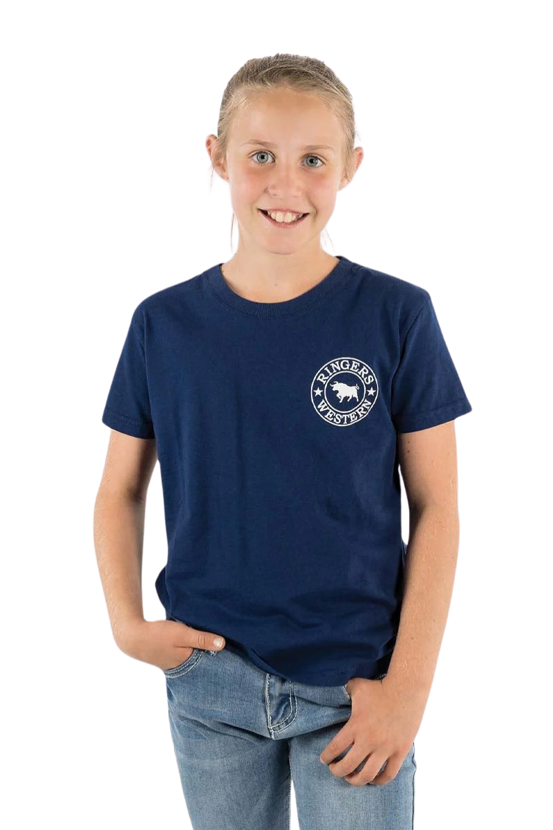 Ringers Western Childrens Signature Bull Classic S/S Tee (320004RW) Navy with White Print 2