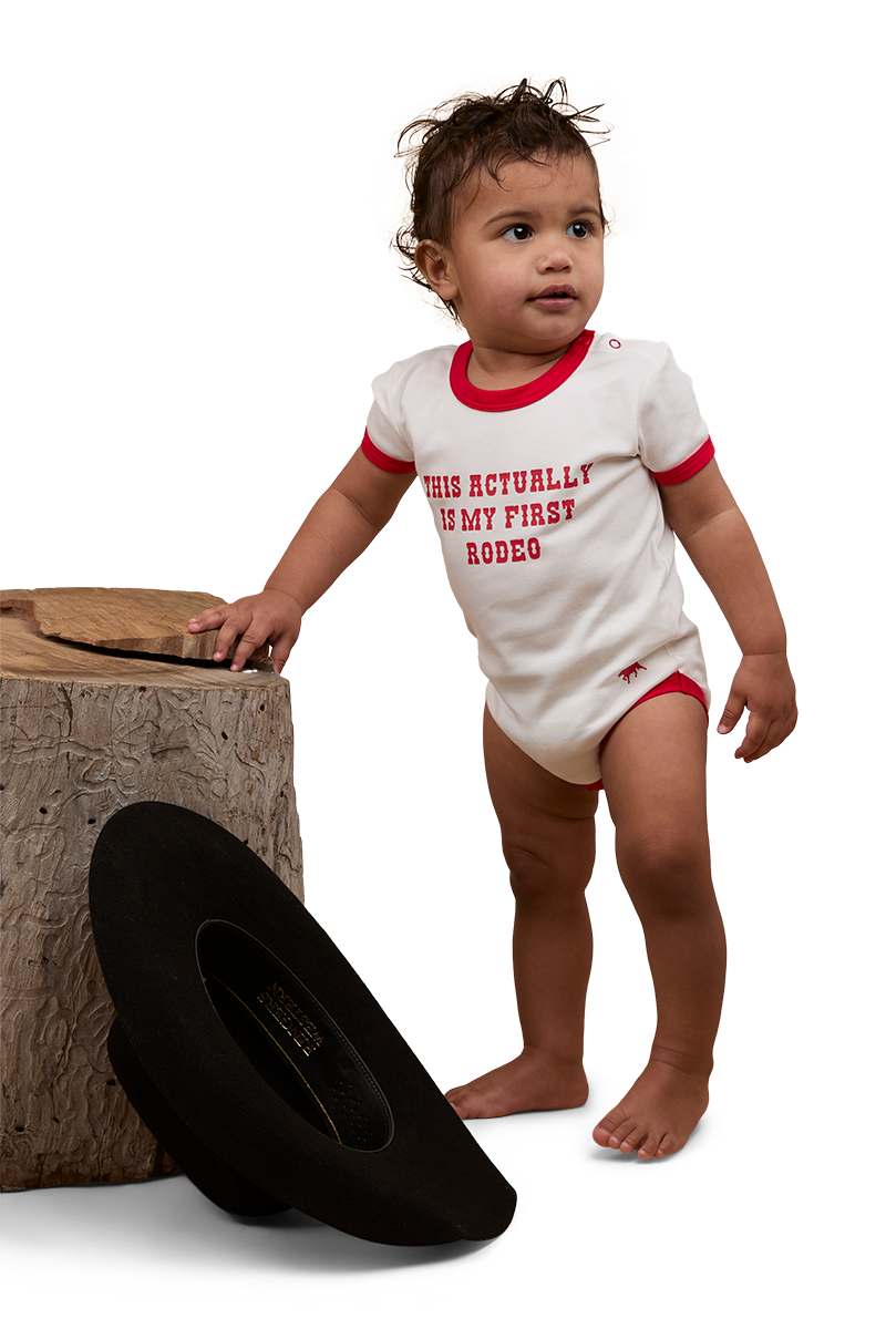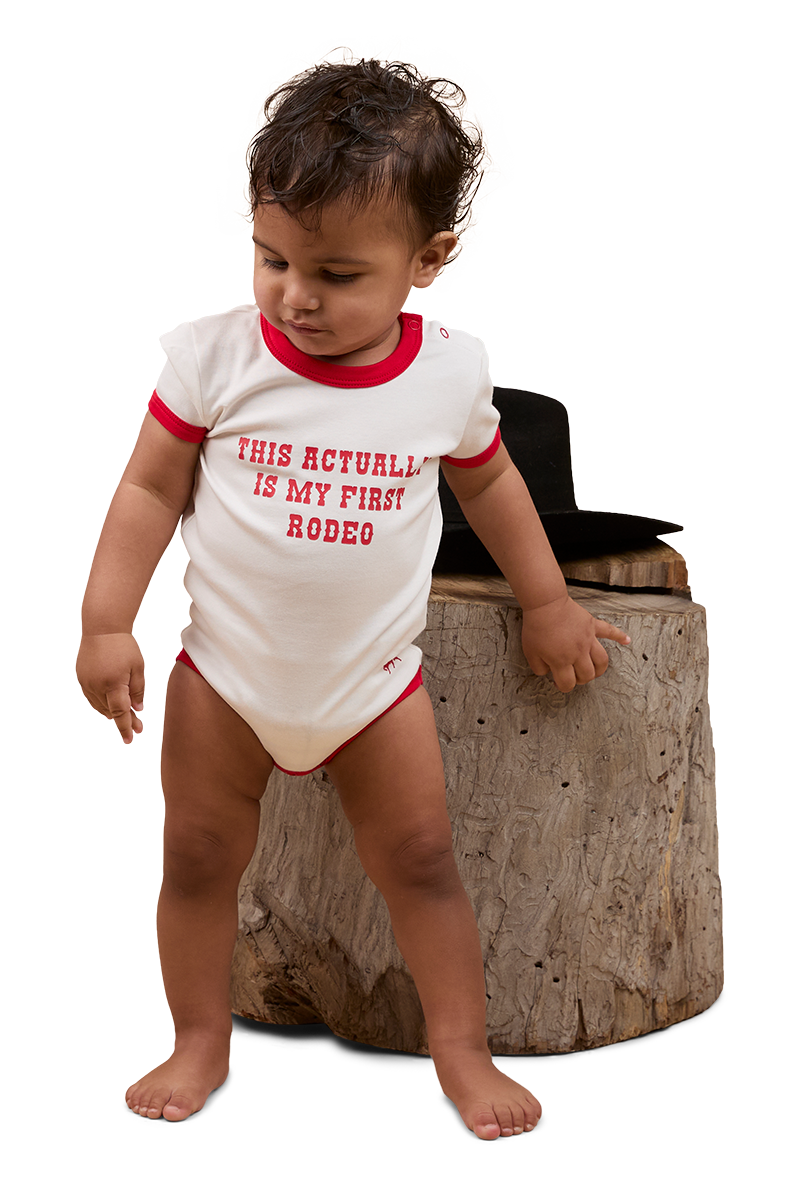 Get your little one rodeo ready with the First Rodeo Babie's Short Sleeve Romper.