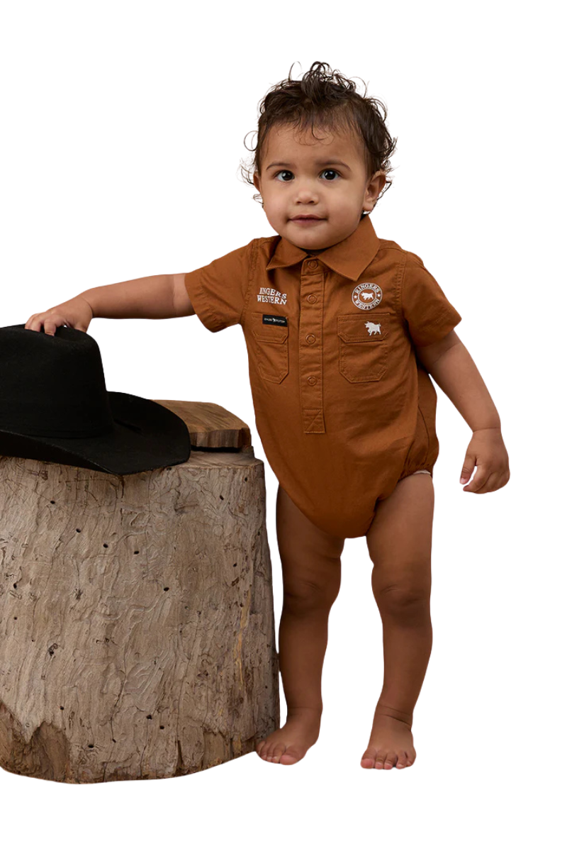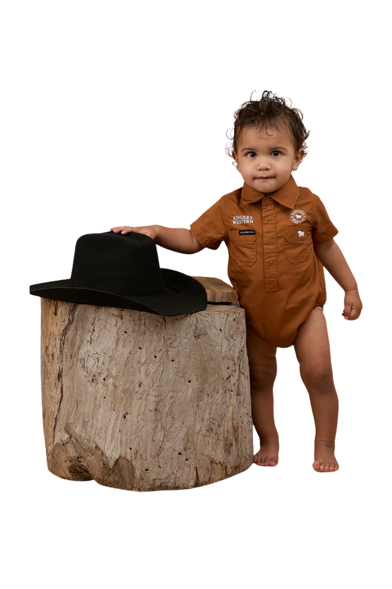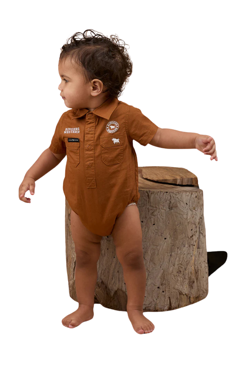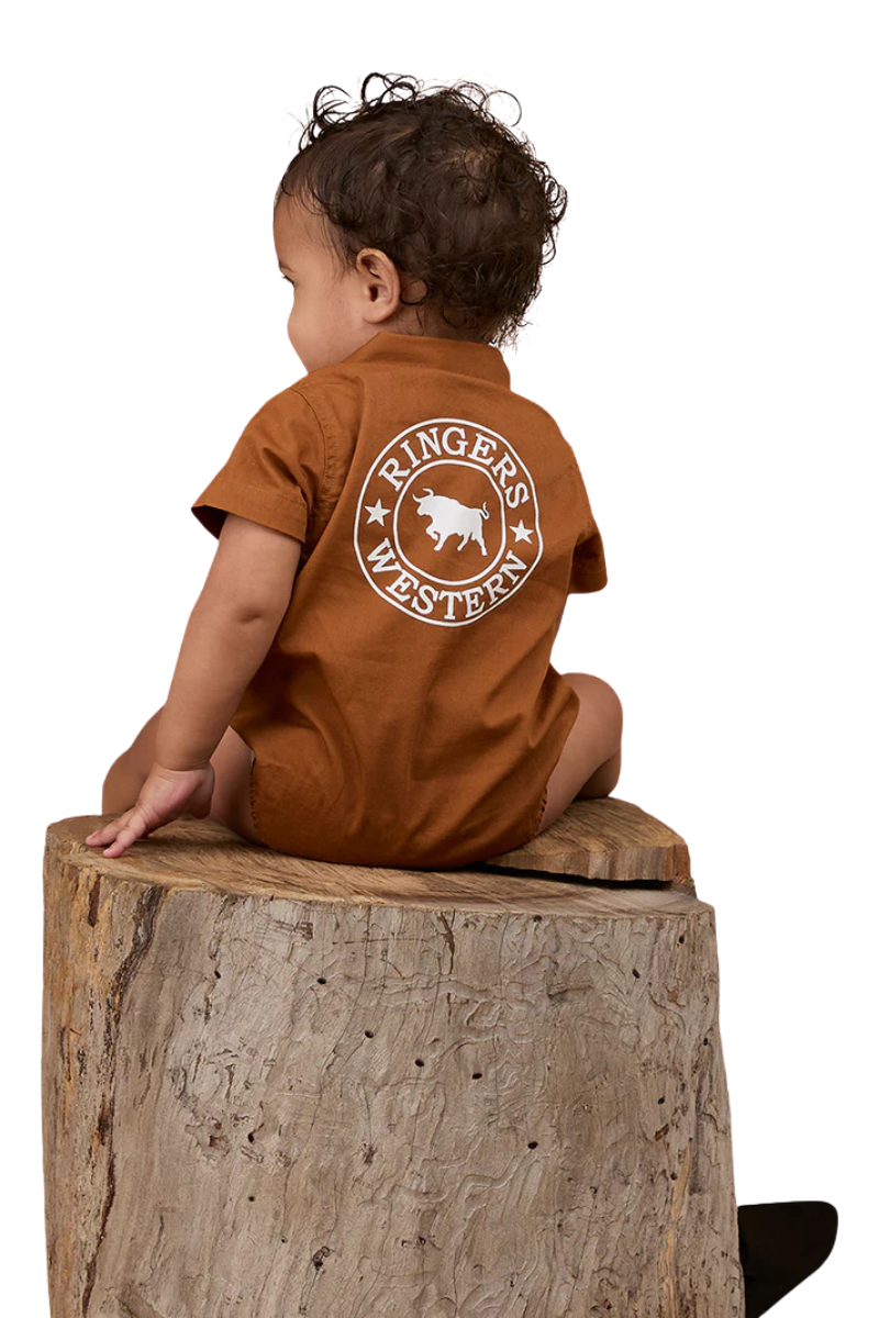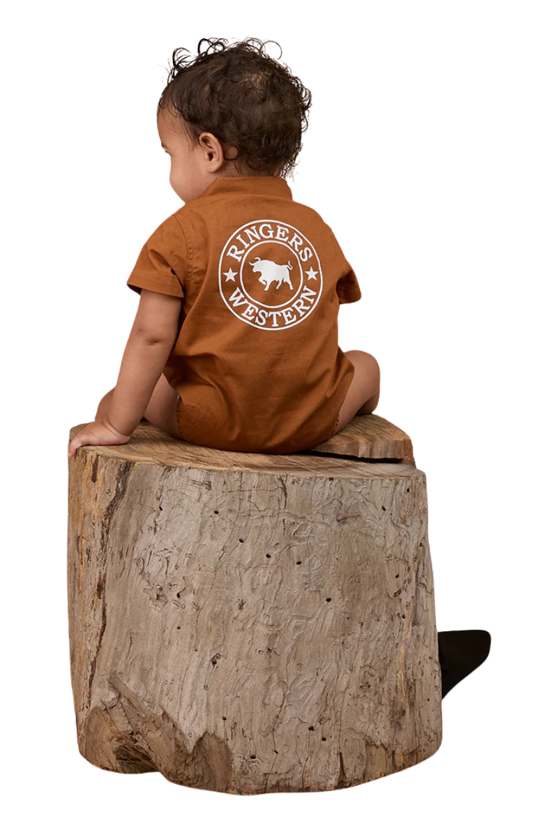 Ringers Western Infants S/S Work Shirt Romper (523002RW) Tobacco/White 0