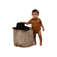 The Ringers Babies Short Sleeve Work Shirt Romper is created from 100% premium cotton, this fabric has a super soft handfeel and offers fantastic comfort and breathability - which is so important for the little ones in our warm, humid climate. A tribute to our classic work shirt design, this romper features mock dual chest pockets as well as our Signature logo on the back. A handy snap button closure makes changes a breeze, making this little romper a convenient and stylish choice for bub at your next rodeo!