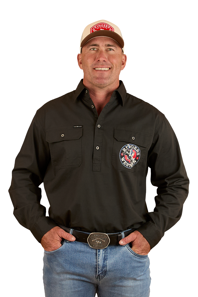 Ringers Western Mens 8 Seconds Half Button L/S Shirt (124093RW) Charcoal S