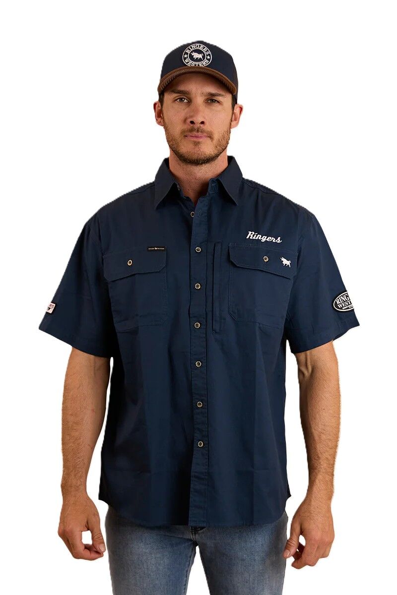 Ringers Western Mens Big Rig S/S Shirt (123104RW) Navy M [SD]