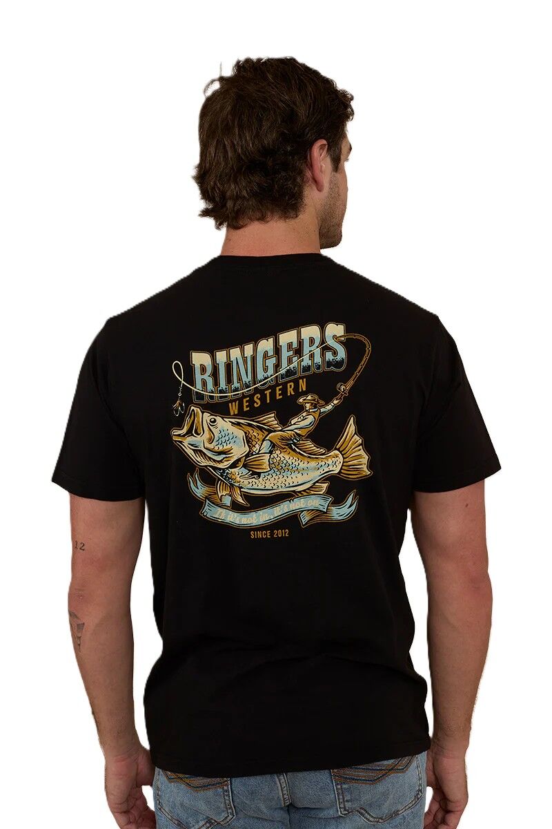 Ringers Western Mens Buckin Barra Loose Fit S/S Tee (123110RW) Black M