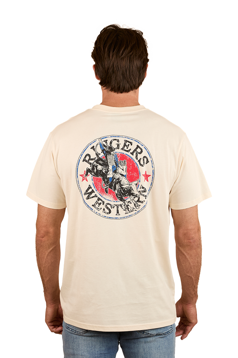 Ringers Western Mens Bucking Bull Loose Fit S/S Tee (124069RW) Off White XS