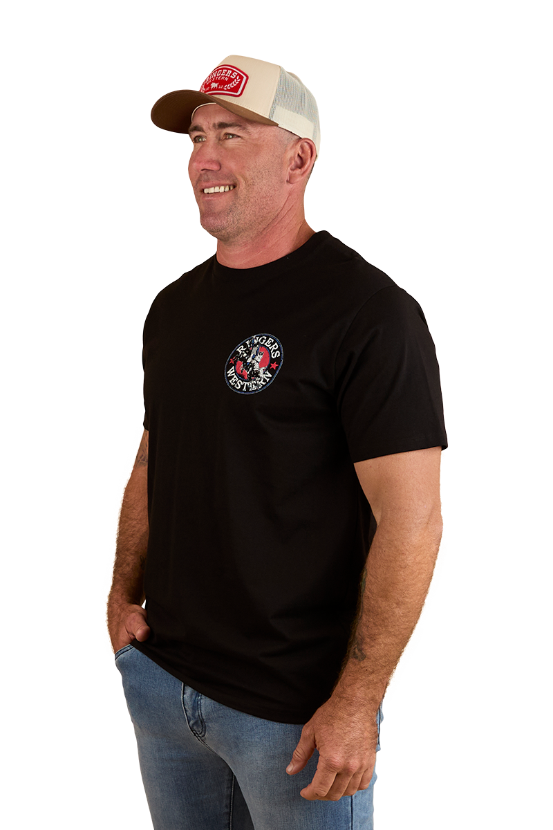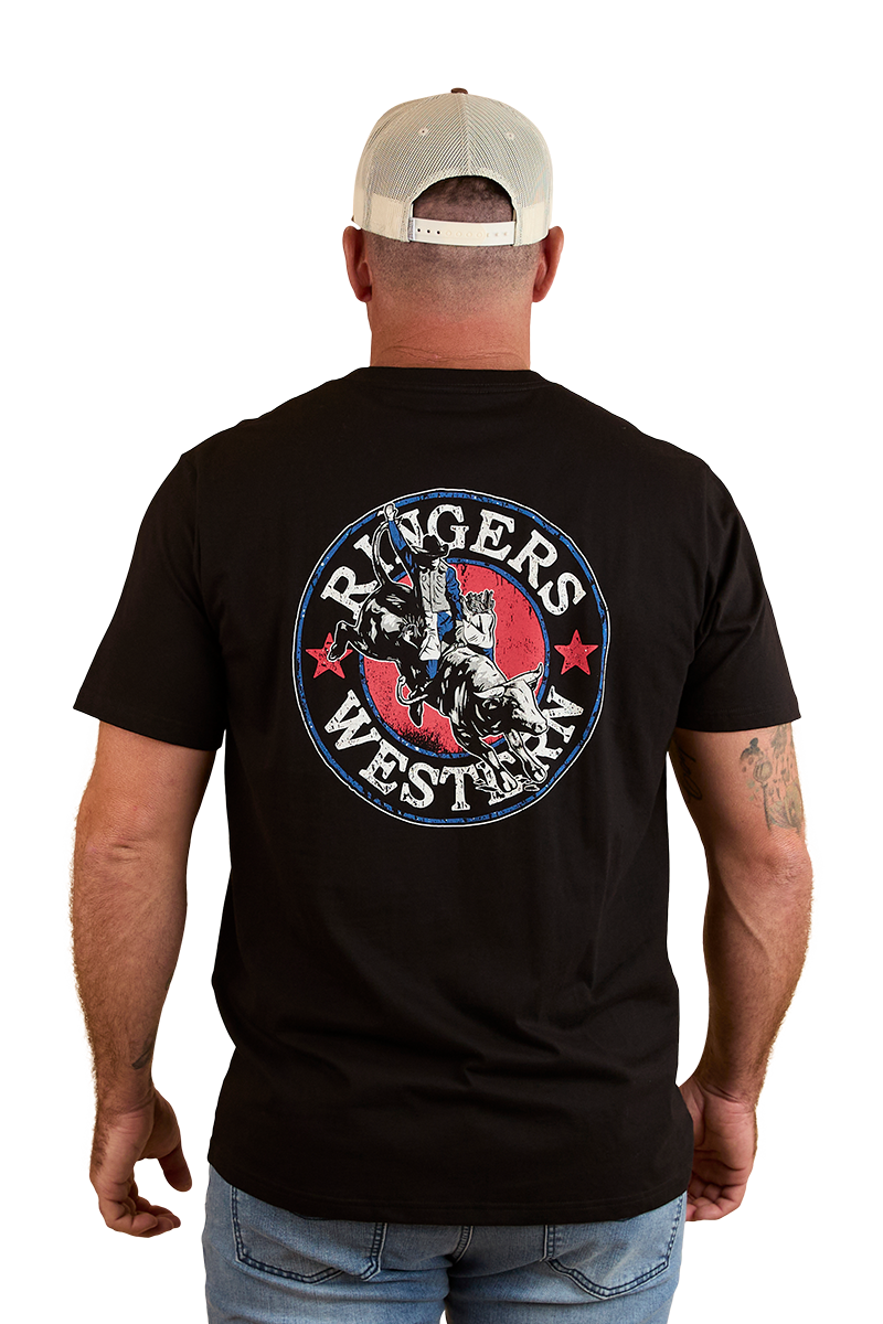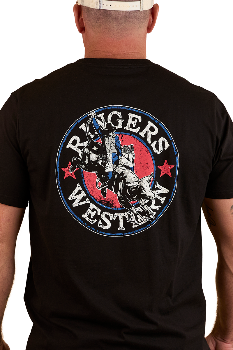 Ringers Western Mens Bucking Bull Loose Fit S/S Tee (124069RW) Black S
