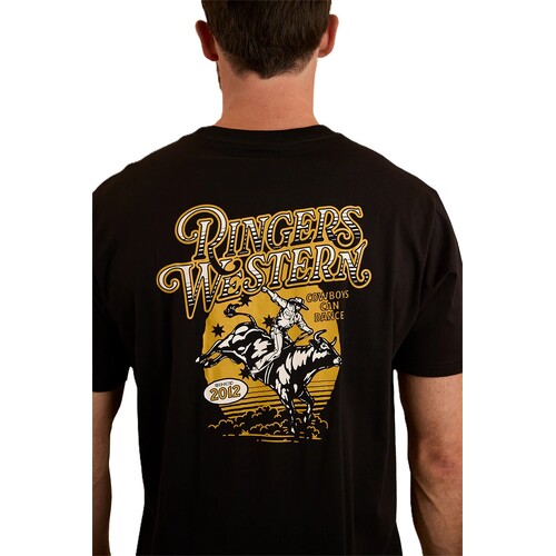 Ringers Western Mens Cowboys Can Dance Loose Fit S/S Tee (124028RW) Black S