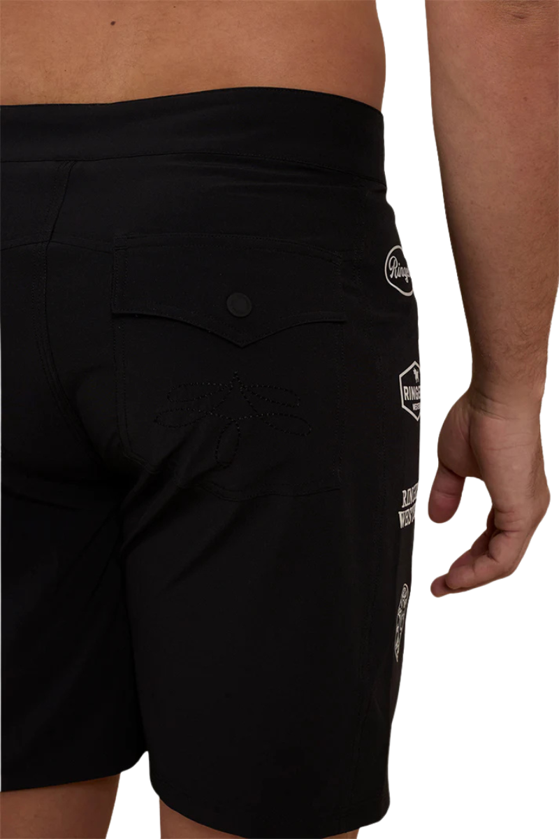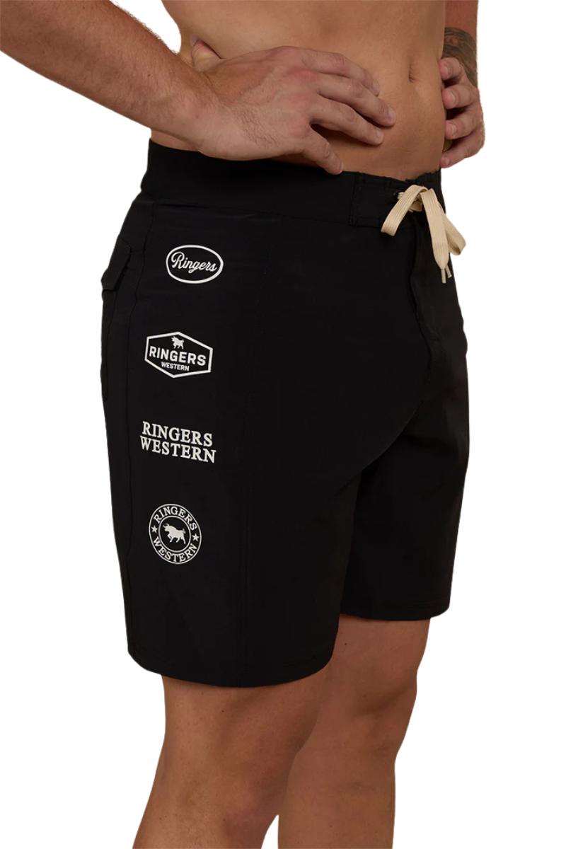 Ringers Western's environmentally friendly swim shorts are a new level of comfort and style. These shorts offer a soft feel against the skin and quick dry capabilities due to the repreve polyester fabric. This fabric is made from recycled plastic bottles making the Griffith shorts an eco-friendly choice. These shorts feature a fixed waist and drawcord closure allowing for a comfortable fit. Multiple Ringers Western labels are proudly displayed on the right leg of this garment making these shorts a functional and stylish addition to your swim collection.