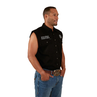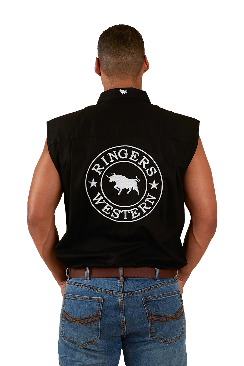 Ringers Western Mens Hawkeye Sleeveless Work Shirt (120210991) Black with White Embroidery S