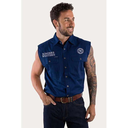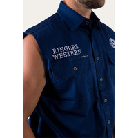 Ringers Western Mens Hawkeye Sleeveless Work Shirt (120210991) Navy with White Embroidery 4XL