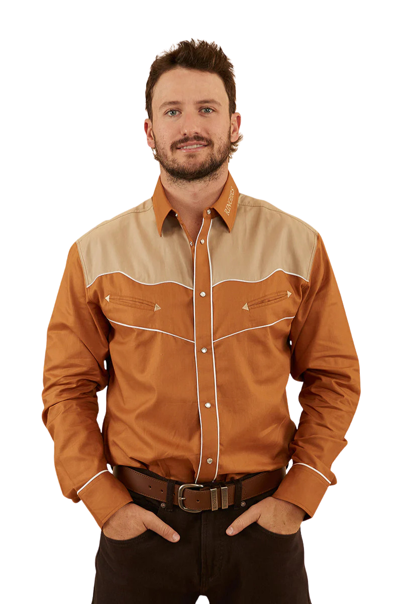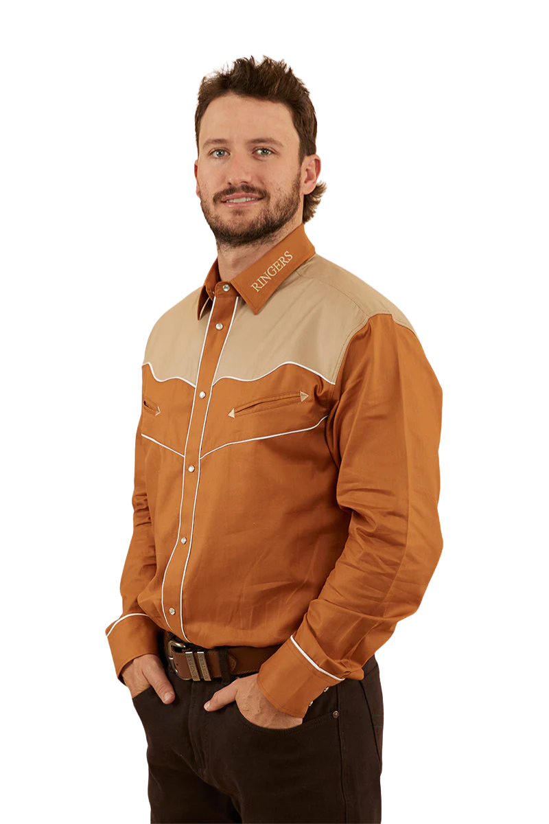 Ringers Western Mens McGraw L/S Western Shirt (122105RW) Toffee/Dark Sand L [SD]