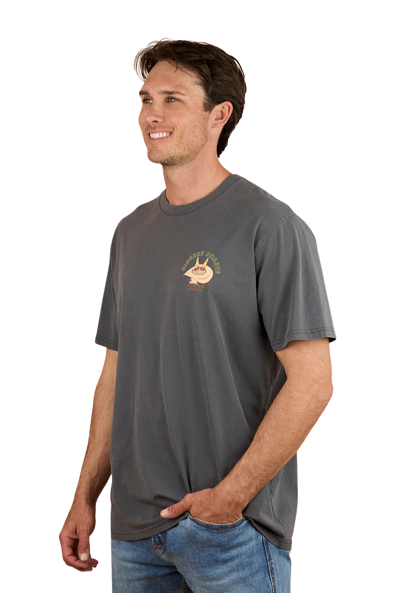 Let the good times roll in the Ringers Roadie Men’s Loose Fit T-Shirt — a soft, breathable and durable 100% cotton graphic tee made for long days, late nights and everything in between. The loose fit gives you extra room to move, making it perfect for roaming festival grounds, or kicking back with a cold one. Featuring a bold signature back graphic and a small chest print, this men’s western tee delivers effortless country style. The pre-shrunk fabric ensures reliable sizing wear after wear, while the classic crew neck makes it easy to pair with your favourite Ringers Western jeans or footy shorts.