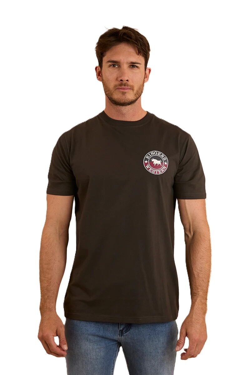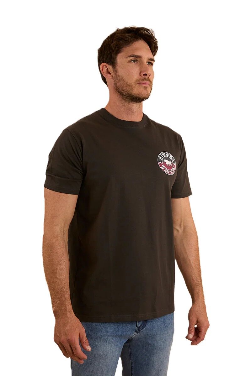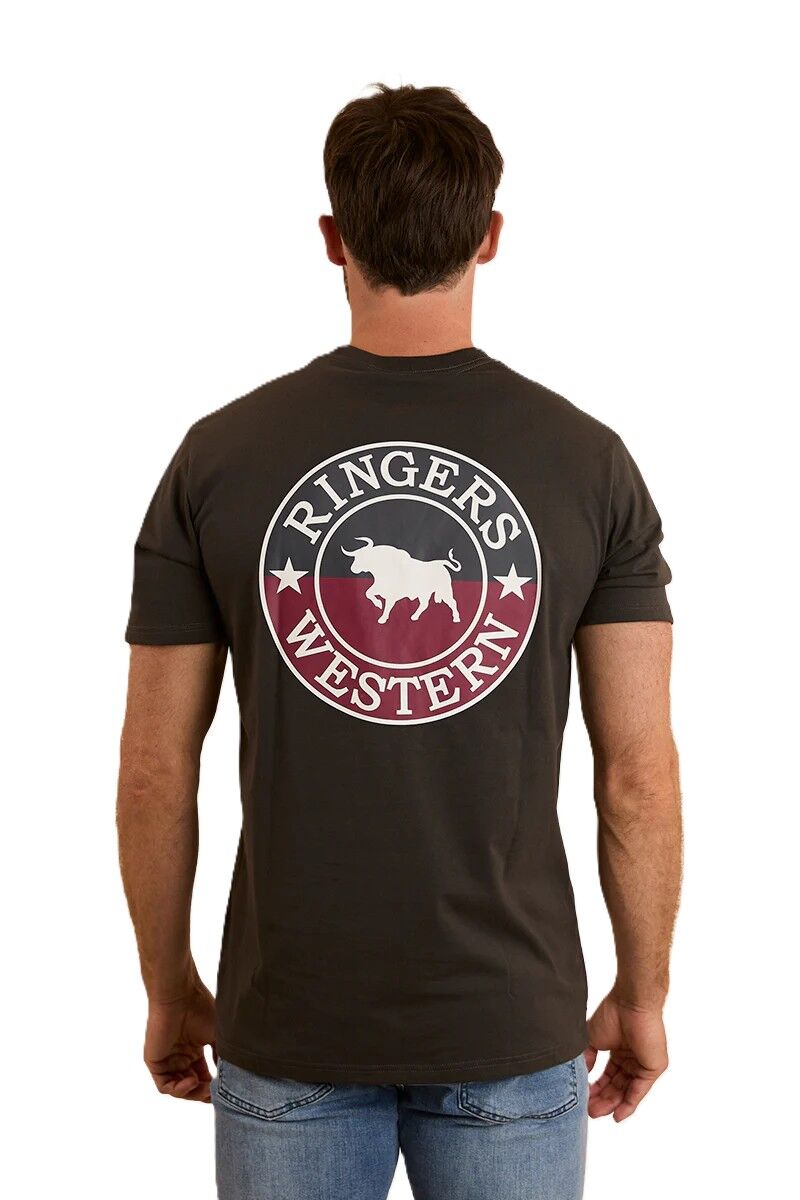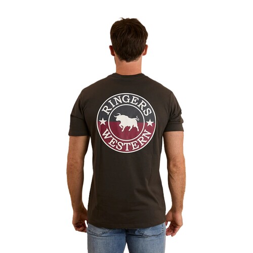 Ringers Western Mens Signature Bull Classic S/S Tee (120004RW) Charcoal/Split S