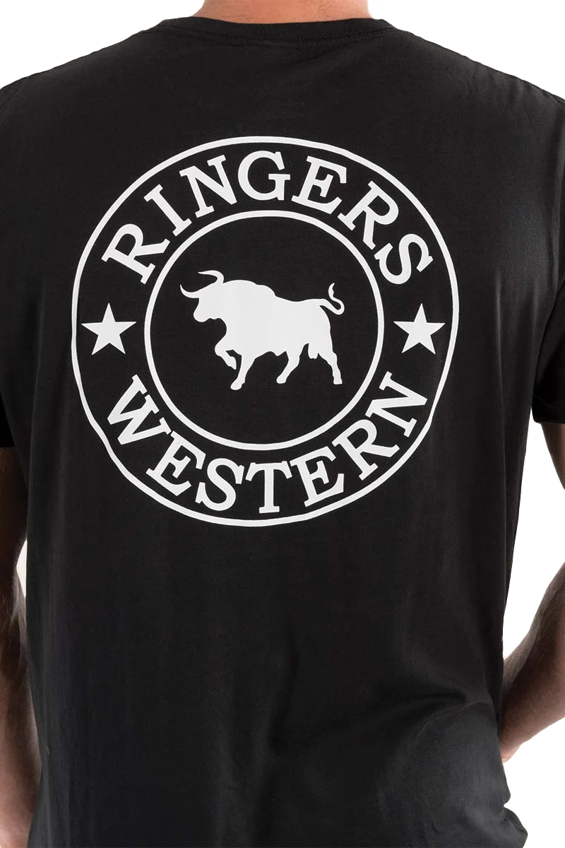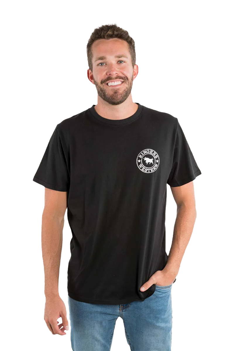 Ringers Western Mens Signature Bull Loose Fit S/S Tee (120201560) Black/White Print S