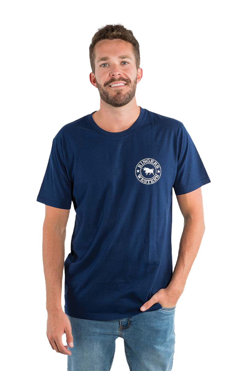 Ringers Western Mens Signature Bull Loose Fit S/S Tee (120201560) Navy/White Print S